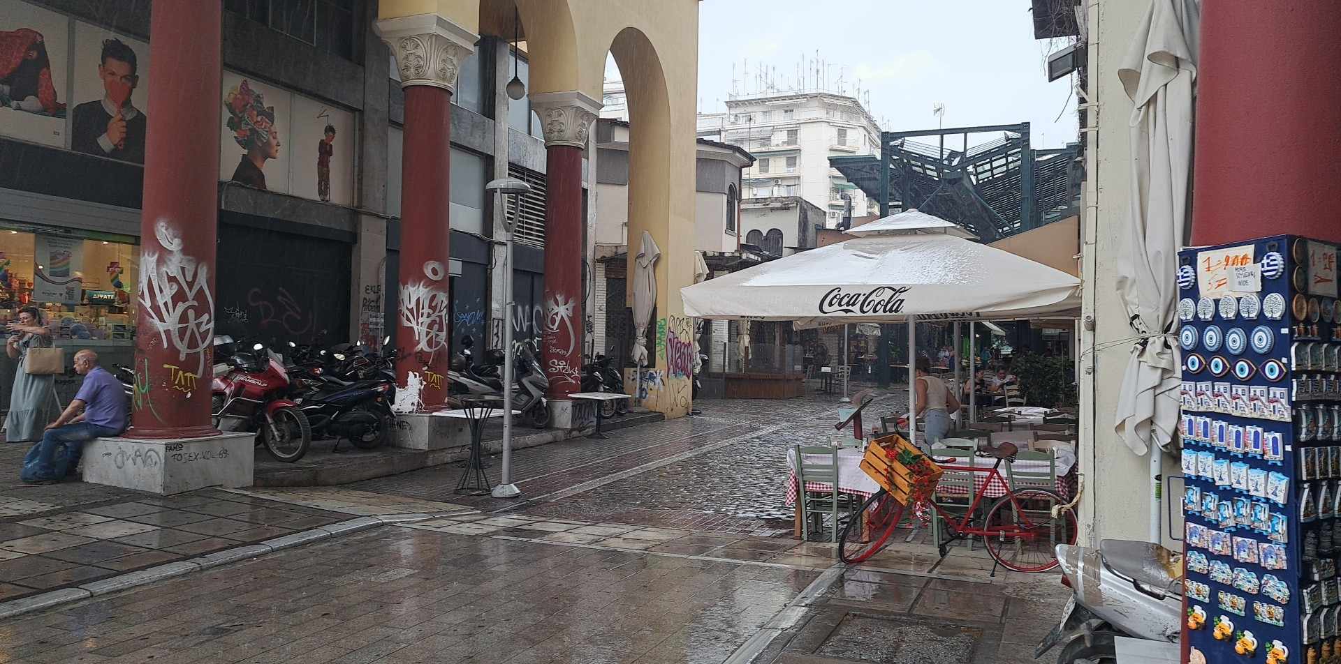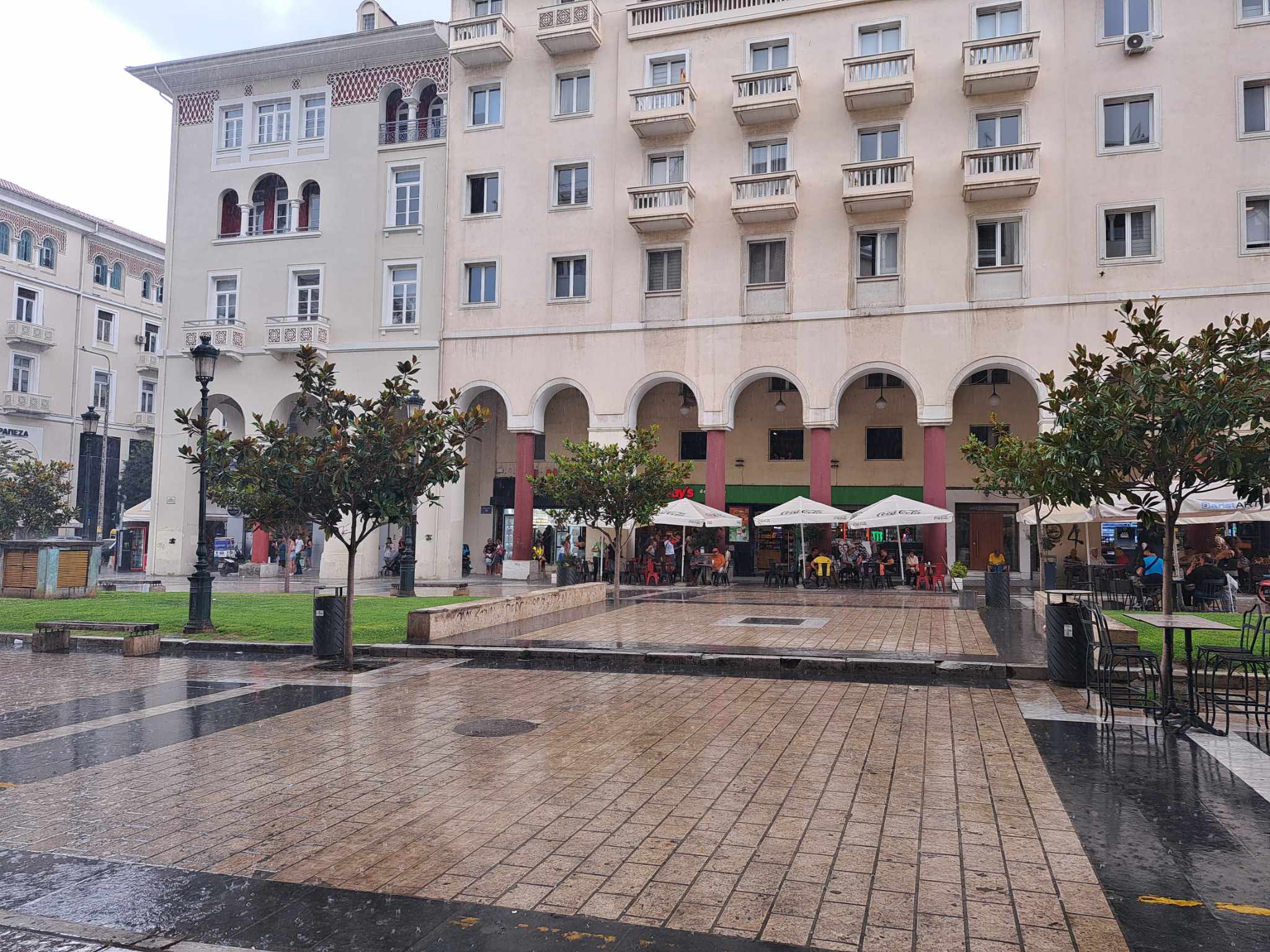 Σε ποτάμια μετατράπηκαν οι δρόμοι στη Θεσσαλονίκη μετά από την καταιγίδα που ξέσπασε νωρίτερα.