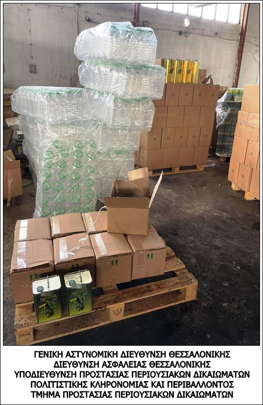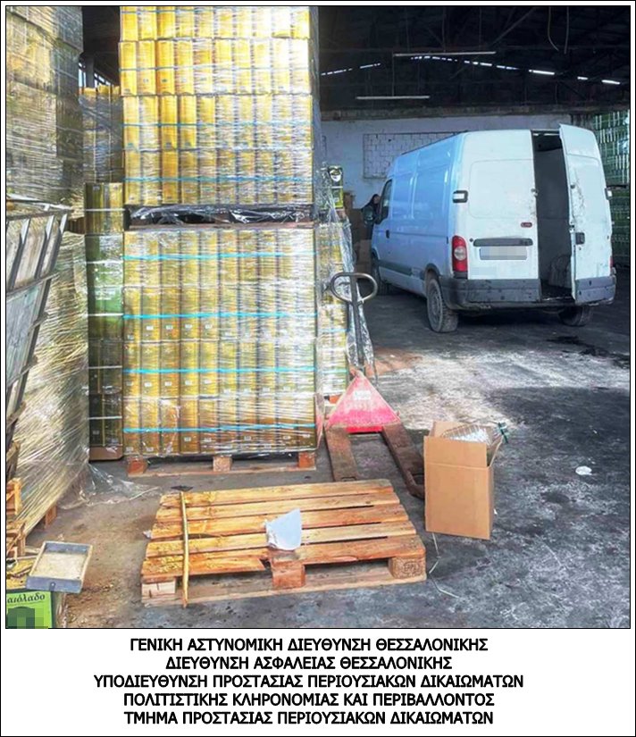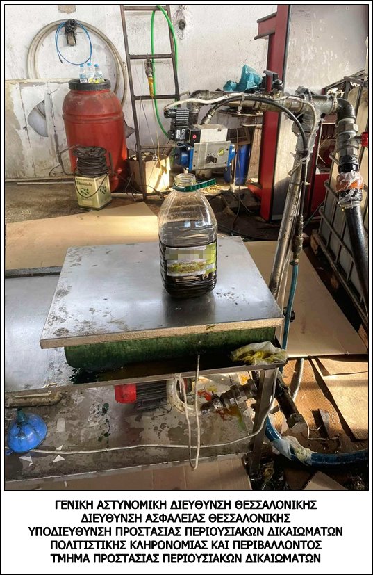 Αστυνομικοί του Τμήματος Προστασίας Περιουσιακών Δικαιωμάτων της Διεύθυνσης Ασφάλειας Θεσσαλονίκης, έπειτα από κατάλληλη αξιοποίηση πληροφοριών, εντόπισαν και συνέλαβαν στο πλαίσιο συντονισμένης επιχείρησης, δύο (2) άτομα, τα οποία ενέχονται σε υπόθεση παρασκευής και διάθεσης νοθευμένου ελαιόλαδου.