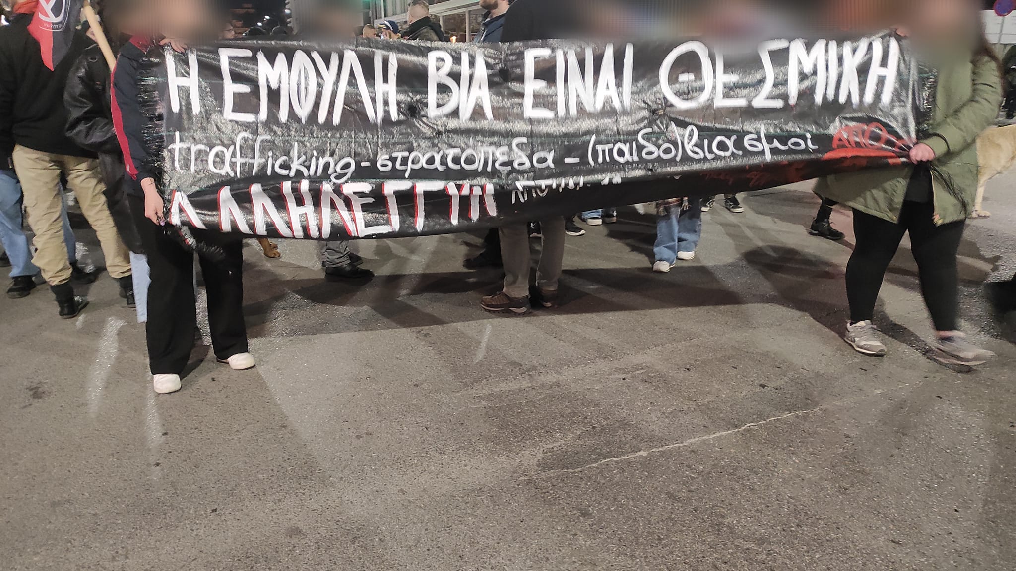 Με αφορμή την εισαγγελική πρόταση στη δίκη για την πολλαπλή σεξουαλική κακοποίηση της 12χρονης στον Κολωνό, άτομα του ευρύτερου αντιεξουσιαστικού χώρου διαδήλωσαν στους δρόμους του κέντρου της Θεσσαλονίκης.