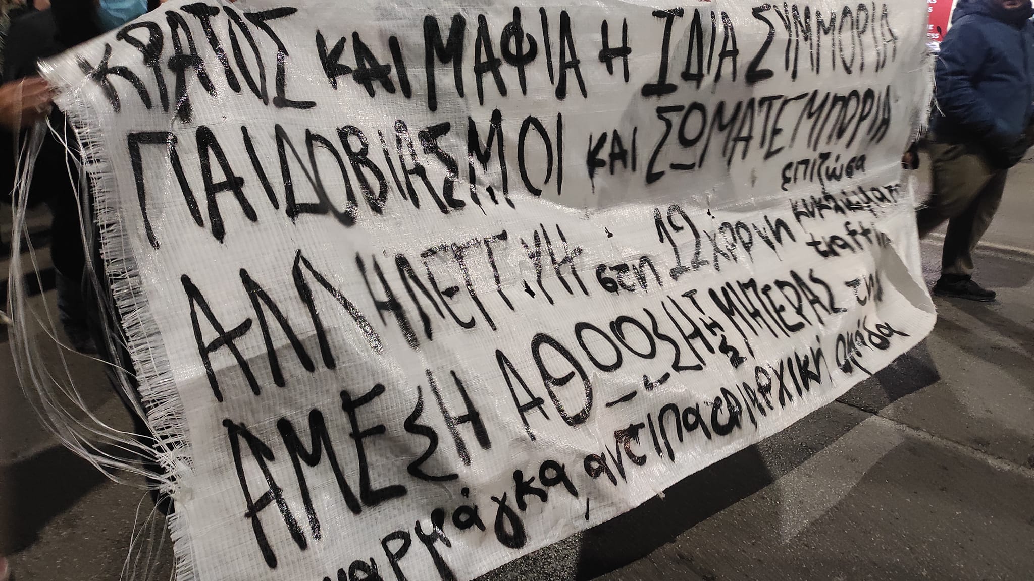 Τα άτομα που συμμετέχουν στην κινητοποίηση κάνουν λόγο για προσπάθεια συγκάλυψης της υπόθεσης. Κρατώντας πανό και πλακάτ, φωνάζουν συνθήματα κατά του κράτους αλλά και κατά της κυβέρνησης και της αστυνομίας.