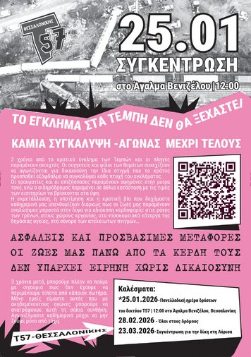 Υπενθυμίζεται πως ένα χρόνο πριν, την Κυριακή 26 Ιανουαρίου 2025, σημειώθηκαν οι μεγαλειώδεις συγκεντρώσεις σε κάθε γωνιά της χώρας, μετά από κάλεσμα του Συλλόγου Συγγενών Θυμάτων Τεμπών, λίγες ημέρες αφότου ήρθαν στο φως της δημοσιότητας τα ηχητικά ντοκουμέντα του 112 τα οποία καταγράφουν τις τελευταίες, εφιαλτικές στιγμές επιβατών της αμαξοστοιχίας Intercity 62.