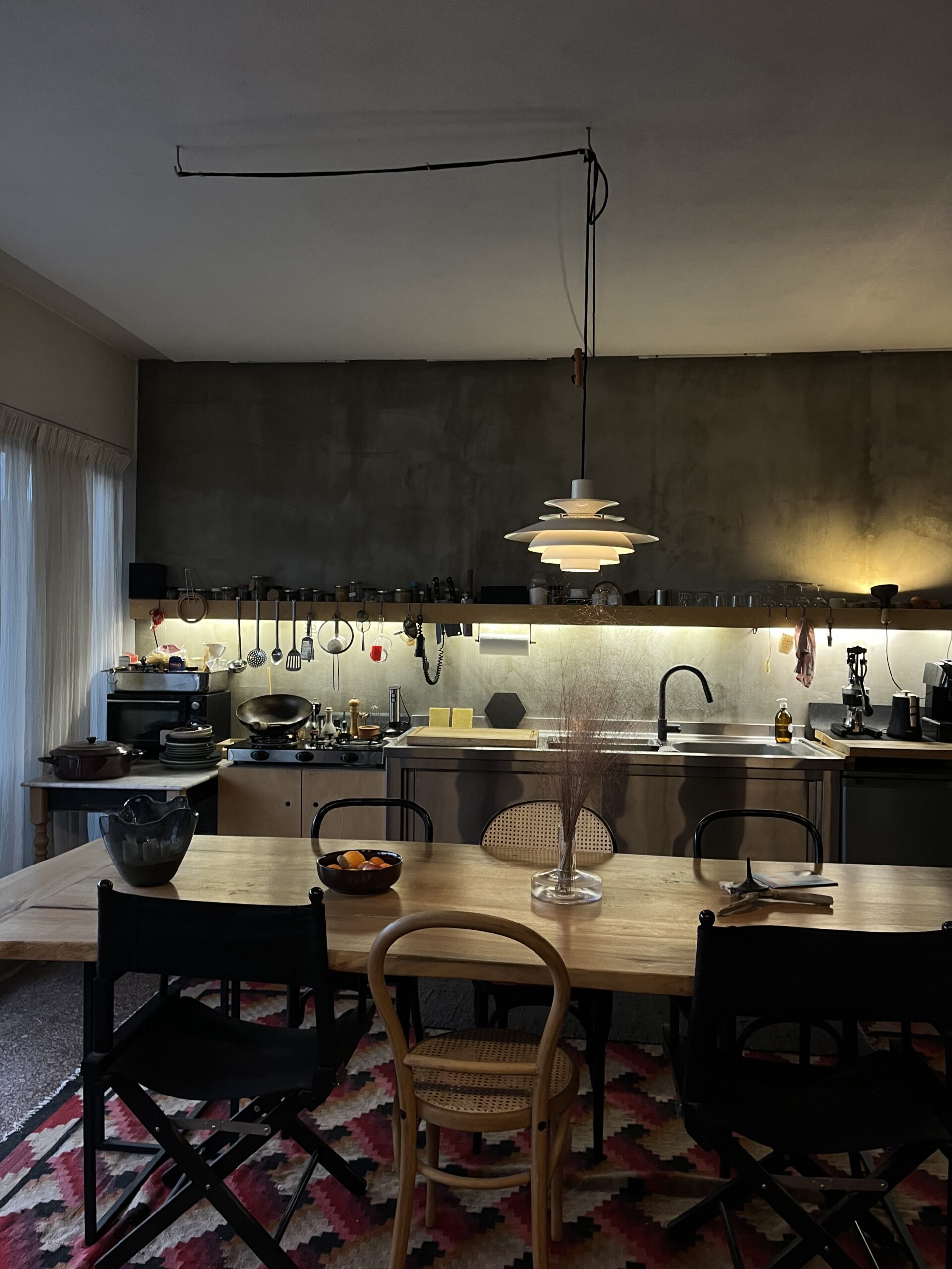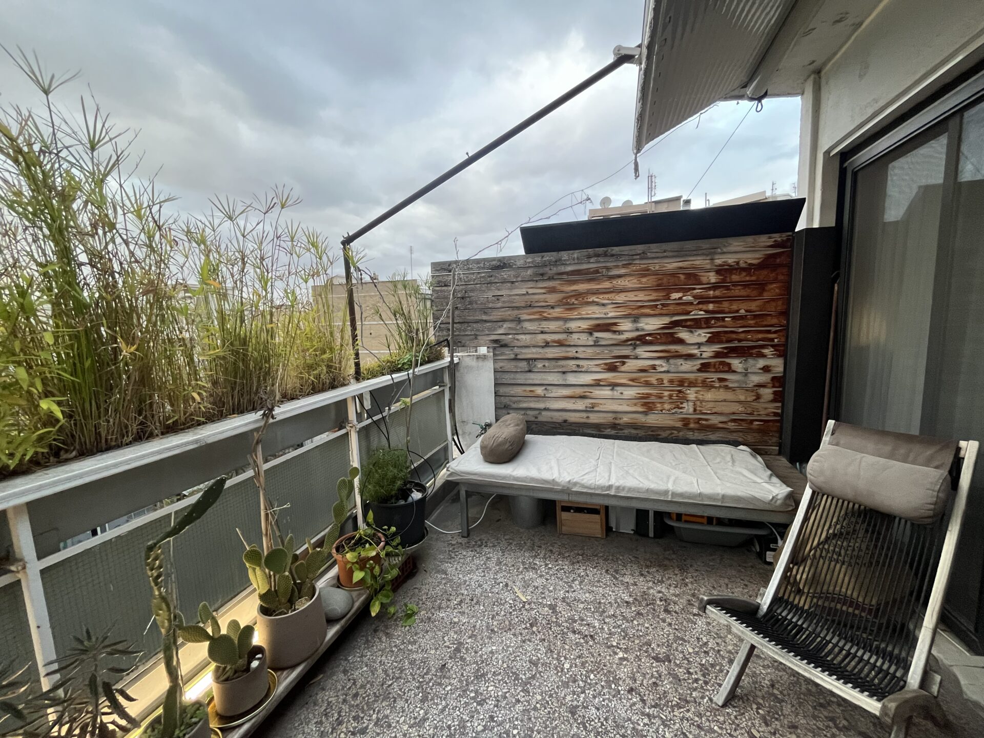 Στον 8ο όροφο του κτιρίου στην οδό Βαλαωρίτου 7, βρήκε αυτό που έψαχνε και ανασχεδίασε την κατοικία το 2016, ως γραμμική αλληλουχία 4 βασικών δραστηριοτήτων: μαγείρεμα, τραπεζαρία, χαλάρωση, ύπνος.
