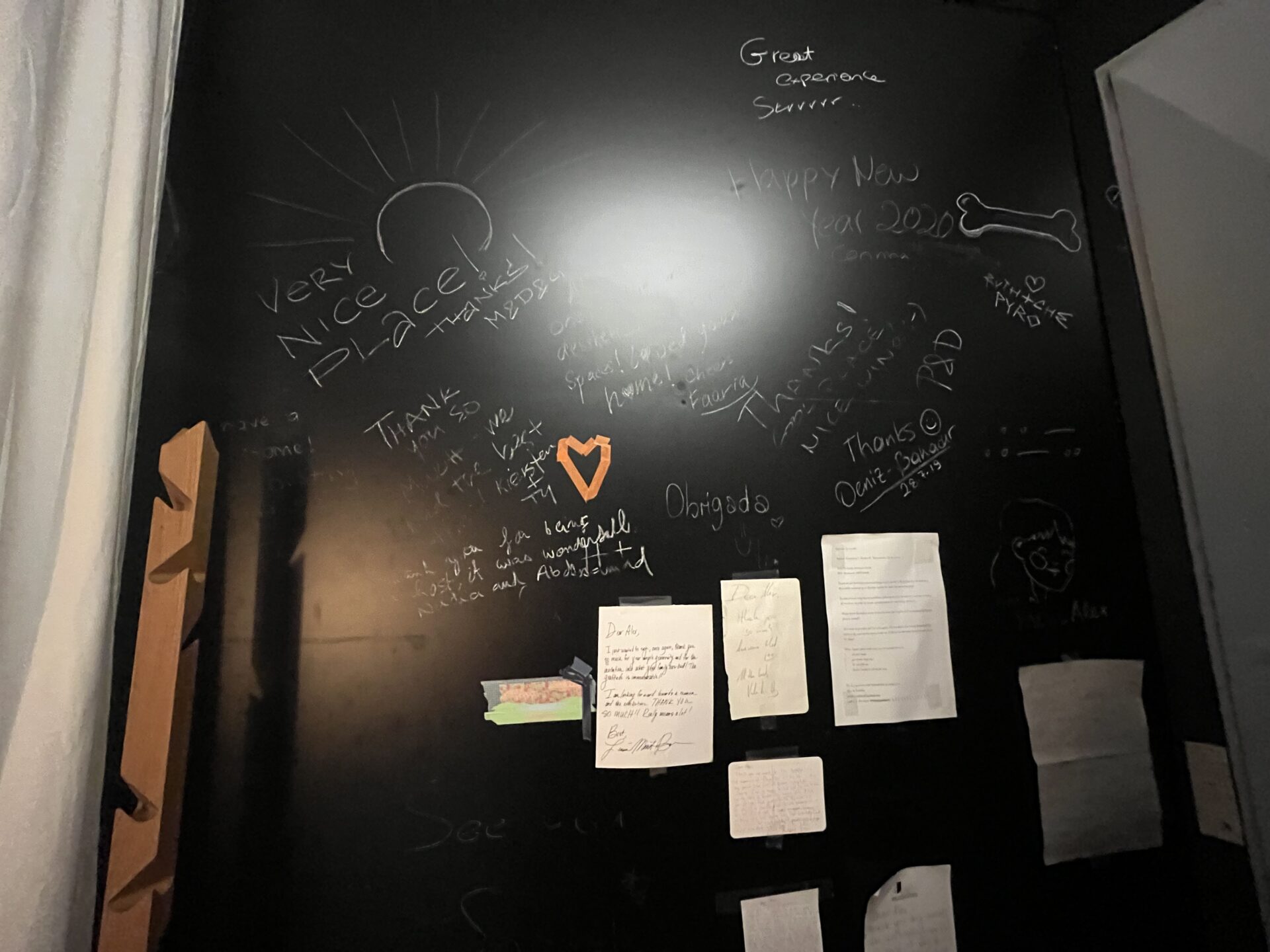 Το διαμέρισμα διατίθεται και για βραχυχρόνια ενοικίαση, με τους επισκέπτες να αφήνουν μηνύματα στον μαύρο τοίχο που υπάρχει κατά την είσοδο/ έξοδο μετά τη διαμονή τους.