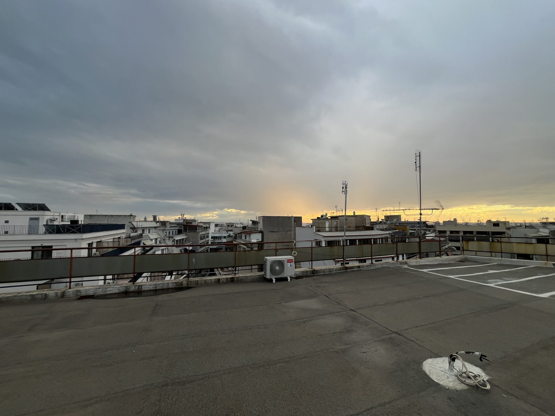Ανεβαίνοντας στην ταράτσα, βλέπεις μπροστά σου τη θέα της πόλης.