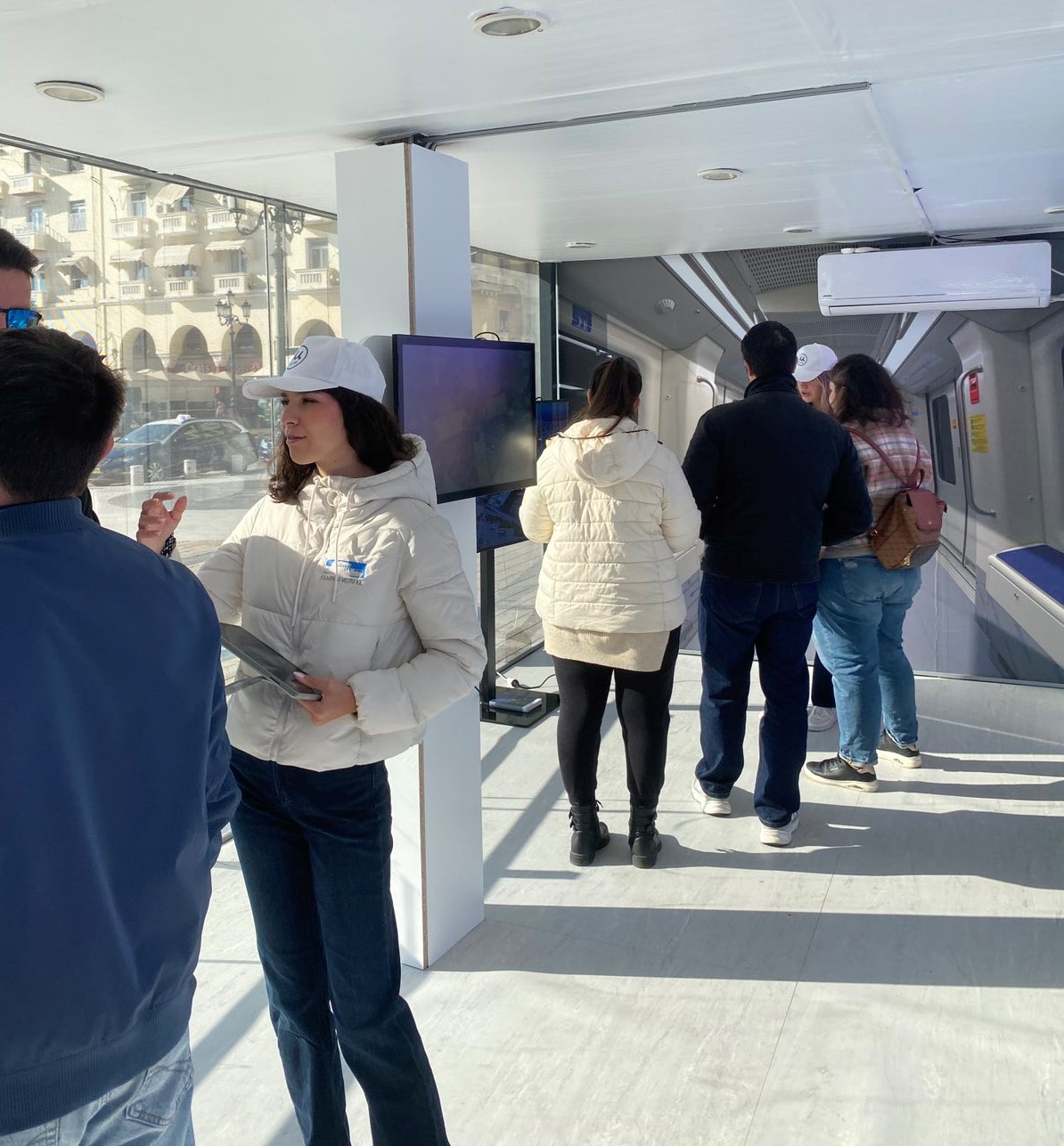 Μέσα στην εγκατάσταση, που προσομοιώνει στο εσωτερικό ενός βαγονιού, κάτοικοι και επισκέπτες της Θεσσαλονίκης θα έχουν την δυνατότητα να βρουν πληροφοριακό και διαδραστικό υλικό, για τη νέα εποχή που ξεκινά στις μετακινήσεις της πόλης με τη λειτουργία του Μετρό.