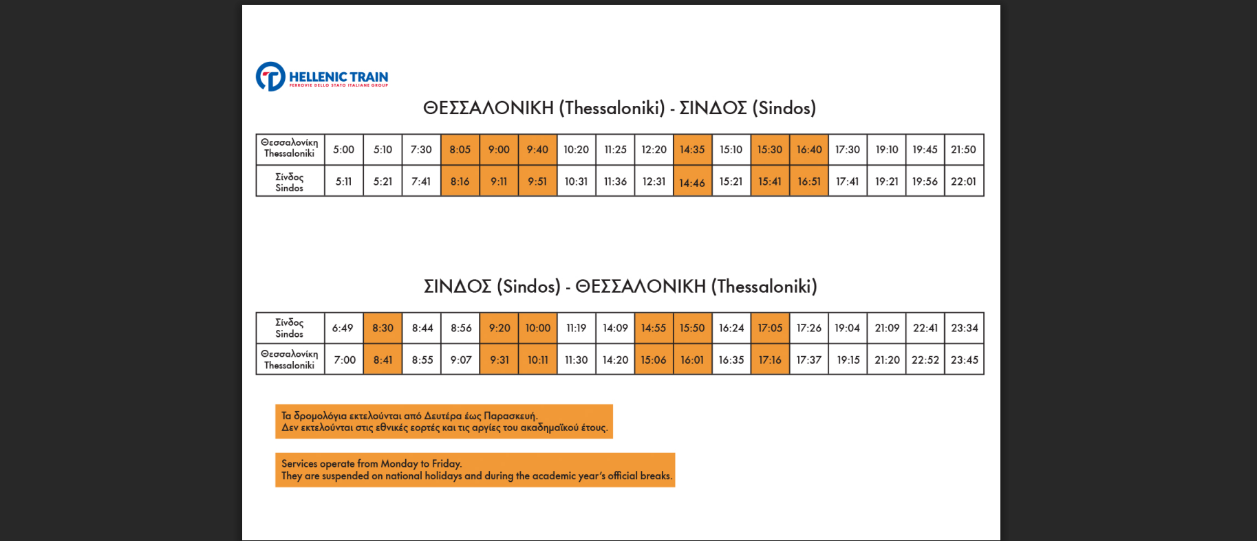 Σημείωση: Ο Σιδηροδρομικός Σταθμός Σίνδου δεν διαθέτει εκδοτήριο.