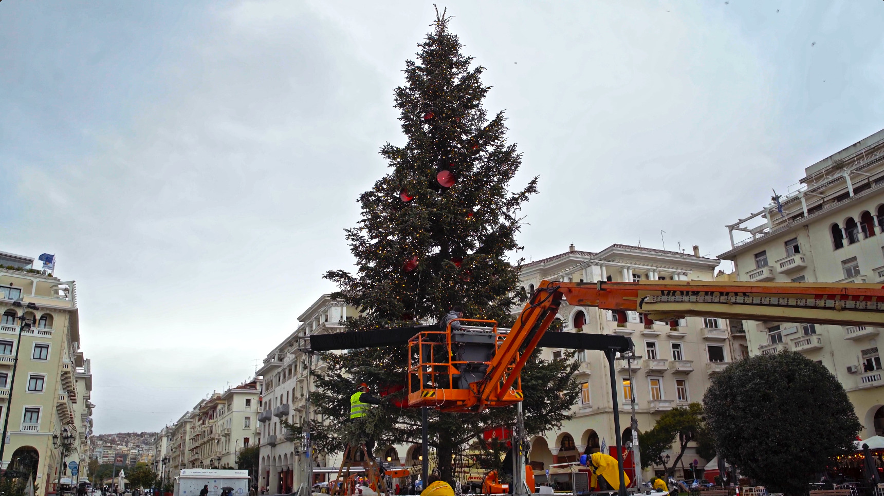 Θεσσαλονίκη: Πυρετώδεις προετοιμασίες για τη φωταγώγηση του δέντρου