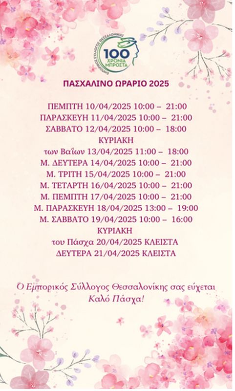 Σε ισχύ τίθεται από σήμερα (Πέμπτη 10/4) το πασχαλινό ωράριο των εμπορικών καταστημάτων στη Θεσσαλονίκη.