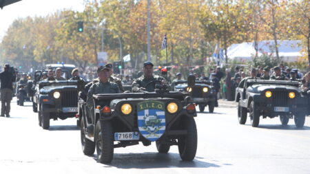 Τα μηχανοκίνητα οχήματα που θα παρελάσουν στη στρατιωτική παρέλαση που θα πραγματοποιηθεί στις 28 Οκτωβρίου, στη Θεσσαλονίκη έχουν ήδη πάρει θέση, αυτή την ώρα, για την καθιερωμένη πρόβα.