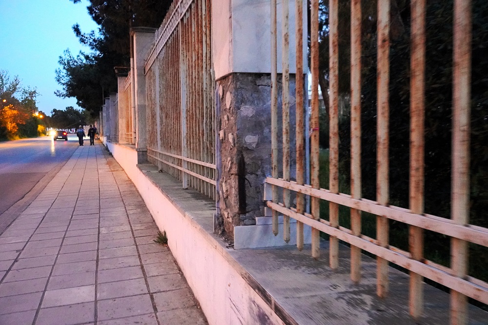 Πέρα από τις εμφανείς φθορές στο ίδιο το ακίνητο και την περίφραξή του, φτάσαμε στο σημείο να κινδυνεύουν πλέον οι διερχόμενοι πολίτες και από ηλεκτροπληξία καθώς έξω από την κεντρική είσοδο της αυλής υπάρχουν γυμνά καλώδια της ΔΕΗ.