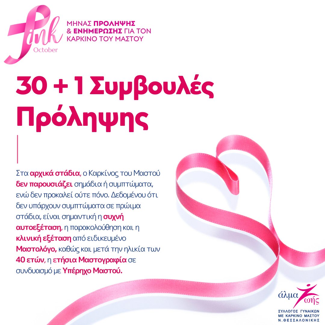 Οι Ομπρέλες θα αλλάξουν όψη και θα φωταγωγηθούν με ροζ χρώμα, στις 20:00. «Η ενέργειά μας αυτή έχει στόχο να φωτίσει τη σημασία του προσυμπτωματικού ελέγχου, αλλά και να τιμήσει -δίνοντας ταυτόχρονα ελπίδα και δύναμη- όλες αυτές τις γυναίκες που σήμερα δίνουν τον δικό τους αγώνα για ΖΩΗ!», αναφέρουν τα μέλη του Συλλόγου.