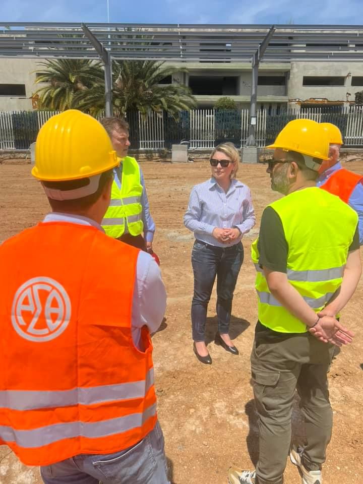 Αυτοψία της Υφυπουργού Χριστίνας Αλεξοπούλου στο έργο κατασκευής του σταθμού φόρτισης των νέων ηλεκτρικών λεωφορείων στο αμαξοστάσιο του ΟΑΣΘ