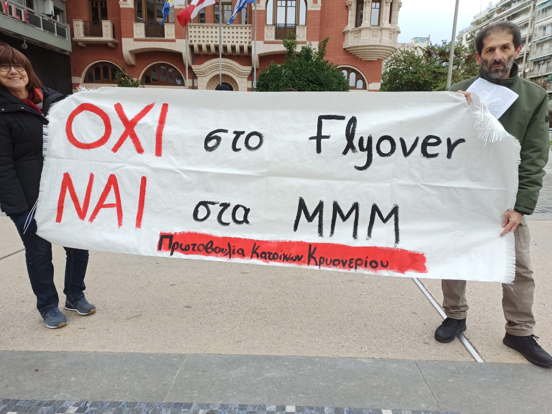 Συγκέντρωση διαμαρτυρίας πραγματοποιείται αυτή τη στιγμή στο κέντρο της Θεσσαλονίκης, ενάντια στην κατασκευή του Fly over.