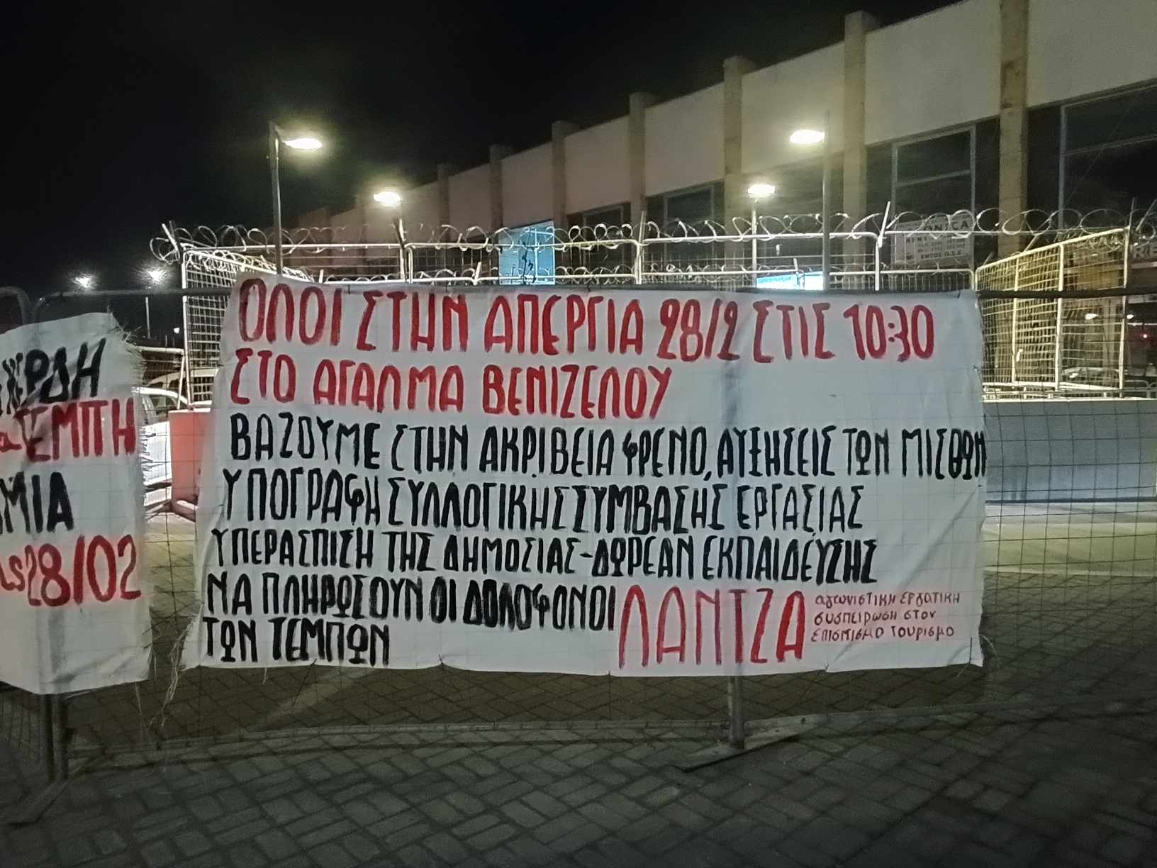 Τα εργατικά σωματεία καλούν όλο τον κόσμο στην πανελλαδική, πανεργατική απεργία της επόμενης Τετάρτης 28 Φεβρουαρίου στις 10:30 στο άγαλμα Βενιζέλου.