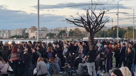 Πλήθος κόσμου μαζεύτηκε και αυτή την Κυριακή (05/10) στο «Δέντρο της Μνήμης», το μνημείο για τα 57 θύματα που βρίσκεται στη Νέα Παραλία Θεσσαλονίκης, πραγματοποιώντας συγκέντρωση αλληλεγγύης στον Πάνο Ρούτσι, τον πατέρα του 22χρονου Ντένις που σκοτώθηκε στα Τέμπη, ο οποίος συνεχίζει την απεργία πείνας για 21η ημέρα με αίτημα την πλήρη διερεύνηση των αιτίων θανάτου του γιου του.