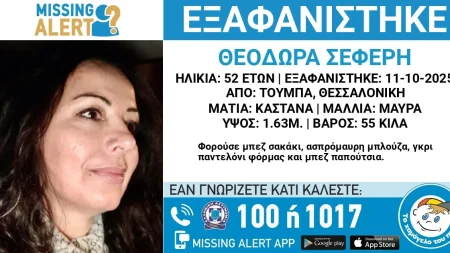 Συγκεκριμένα, σύμφωνα με ανακοίνωση του «Χαμόγελου του Παιδιού», η γυναίκα εξαφανίστηκε στις 11/10/2025, στις 15:30 από την περιοχή της Τούμπας.