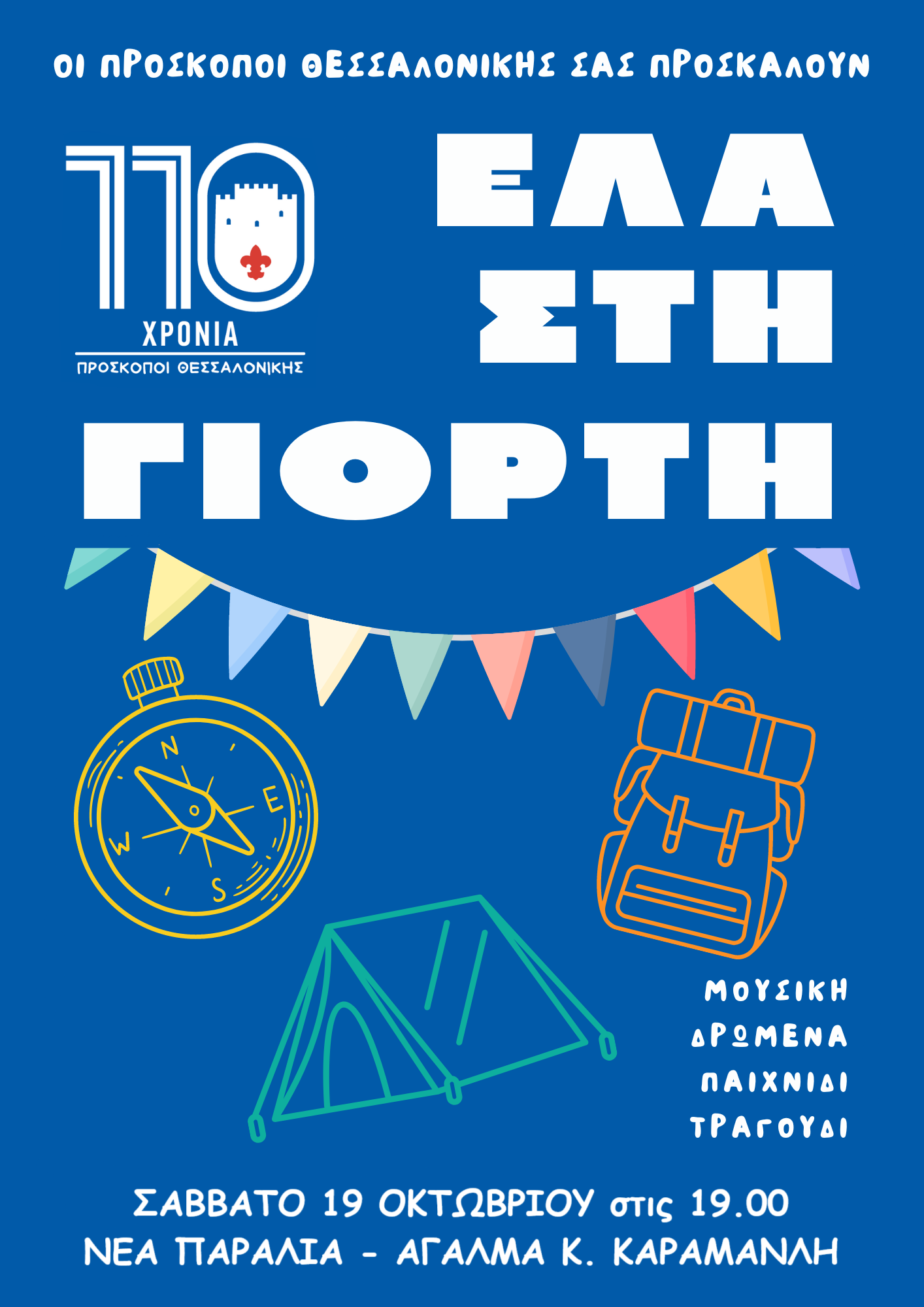 Με χρώμα, χαμόγελα, περιπέτεια και ατελείωτο παιχνίδι για μικρούς και μεγάλους, θα γεμίσει το ερχόμενο Σάββατο, η Νέα Παραλία, με αφορμή τον εορτασμό των 110 χρόνων Προσκόπων Θεσσαλονίκης.