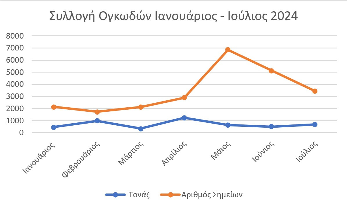 Το διάστημα Ιανουαρίου – Ιουλίου 2024, η Υπηρεσία Καθαριότητας του Δήμου συγκέντρωσε 4.799 τόνους ογκώδη από 24.274 σημεία.
