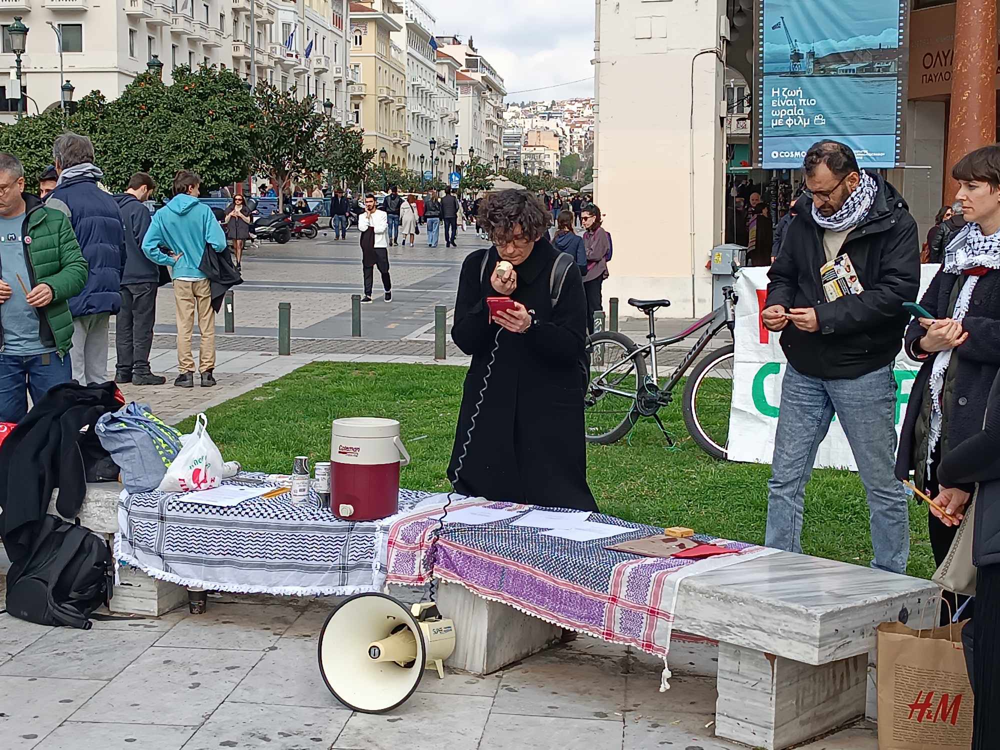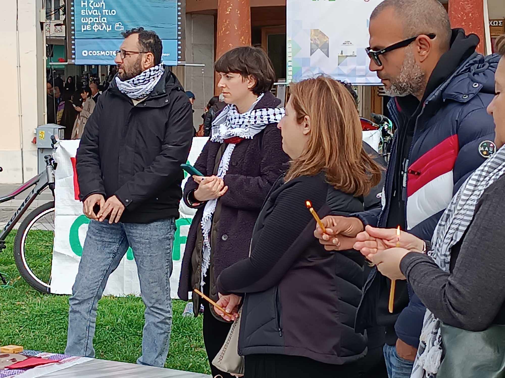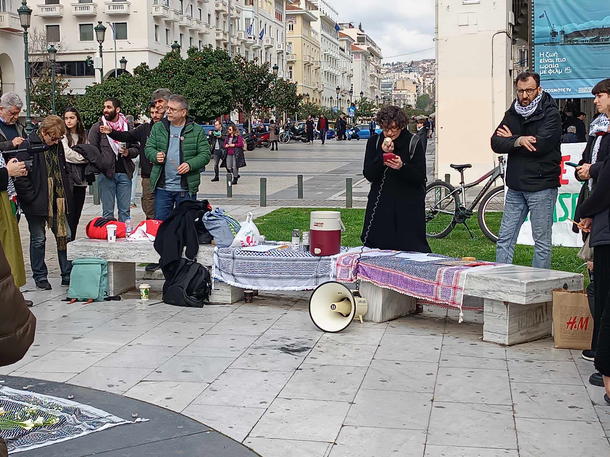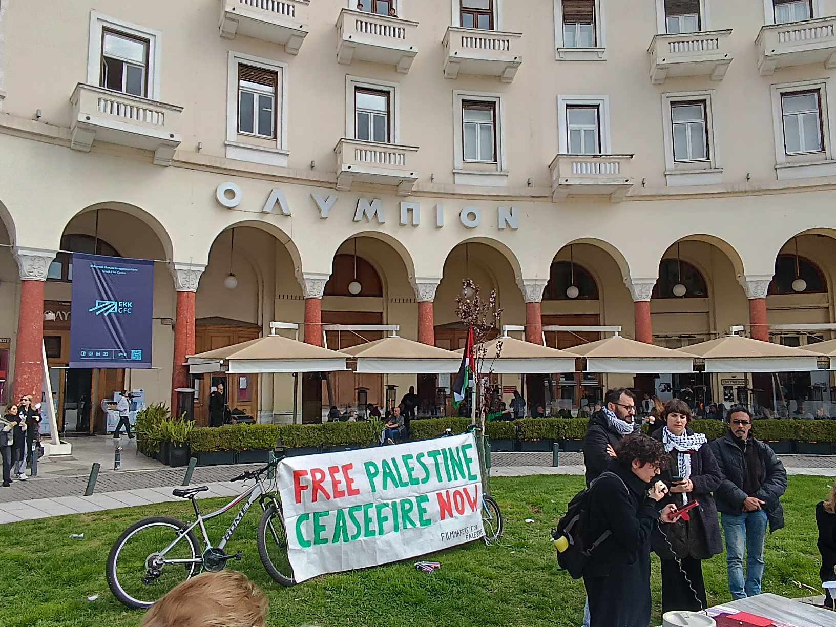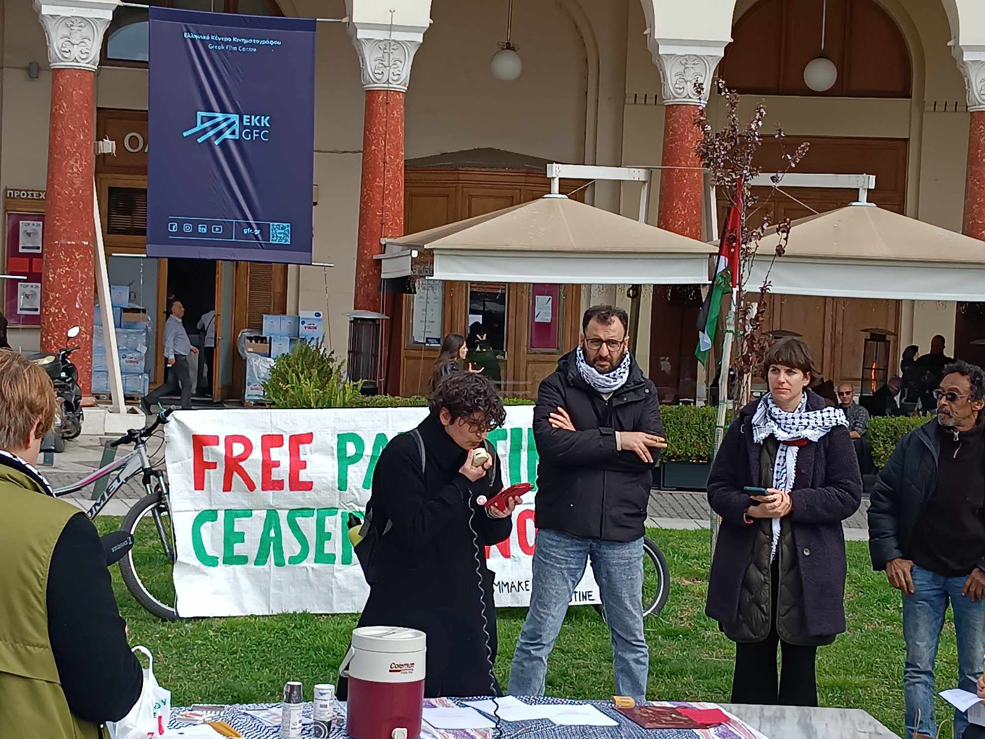 Τελετή μνήμης πραγματοποιήθηκε το μεσημέρι της Κυριακής στη Θεσσαλονίκη, για τους/τις Παλαιστίνιους/ες κινηματογραφιστές/ριες έξω από τον κινηματογράφο Ολύμπιον.