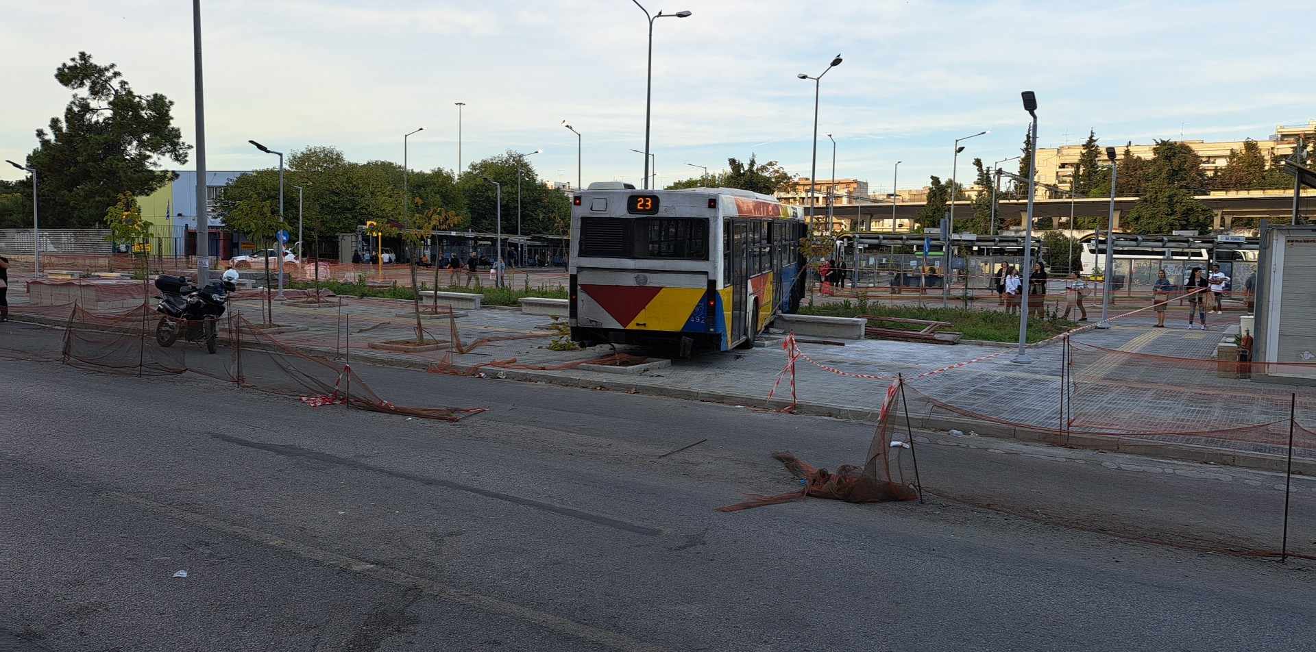 Ο οδηγός του ΟΑΣΘ έχασε τον έλεγχο του οχήματος, με αποτέλεσμα το λεωφορείο του ΟΑΣΘ να περάσει στο αντίθετο ρεύμα της Μοναστηρίου