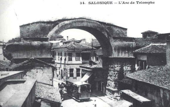 Α: Ένα τερατόμορφο πλάσμα με φωσφορίζοντα χέρια και αλυσίδες στο λαιμό. Σύμφωνα με τον θρύλο άρπαξε κάποτε μια νύφη που τόλμησε να φωτογραφηθεί κάτω από την αψίδα. Έκτοτε οι νύφες φωτογραφίζονται στα Κάστρα, στον Λευκό Πύργο και στο λιμάνι. Β: Μια γυναίκα που έβγαινε, παλιά στη δεκαετία του ‘ 70, φορώντας νυχτικό και καταριότανε τους περαστικούς. Πέθανε στο ψυχιατρείο. Γ: Μια ζοφερή απεικόνιση στο ανάγλυφο του μνημείου. Αν κοιτάξεις στον βόρειο πεσσό, στην πρώτη ζώνη, θα δεις ένα πλάσμα-τέρας σαν την Μέδουσα. Ο θρύλος λέει ότι ο Γαλέριος είδε το τέρας αυτό στον ύπνο του, μια εβδομάδα προτού γίνουν τα εγκαίνια της Καμάρας. Τρόμαξε τόσο, που ζήτησε, για να ξορκίσει το κακό, να βάλουν στον ανάγλυφο διάκοσμο και το «στοιχειό».