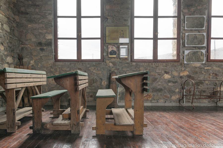 Στο πέτρινο σχολείο του χωριού, χτισμένο το 1932, βρίσκεται καταγεγραμμένη όλη η ιστορία του χωριού, με φωτογραφικό υλικό από τη ζωή, τους ανθρώπους και την ιστορία τους. Λειτουργούσε μέχρι και την κατάργηση του οικισμού το 1947, ενώ σήμερα η χρήση του είναι ως κτίριο μνήμης και παράδοσης.
