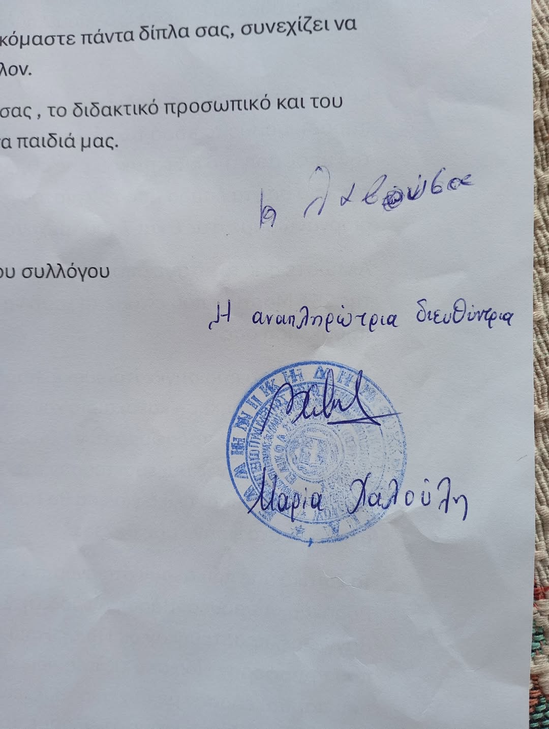 Προς Διεύθυνση Ειδικού Σχολείου Δήμου Θερμαϊκού Κυρία διευθύντρια του ειδικού σχολείου, έχουμε τη χαρά να σας παραδώσουμε το ποσό των χιλίων τριακοσίων (1300) ευρώ, μετά την απόφαση του διοικητικού μας συμβουλίου, να διατεθούν στο σχολείο σας τα έσοδα από το Χριστουγεννιάτικο Bazaar που διοργανώσαμε στις 6 και 7 του τρέχοντος μηνός.