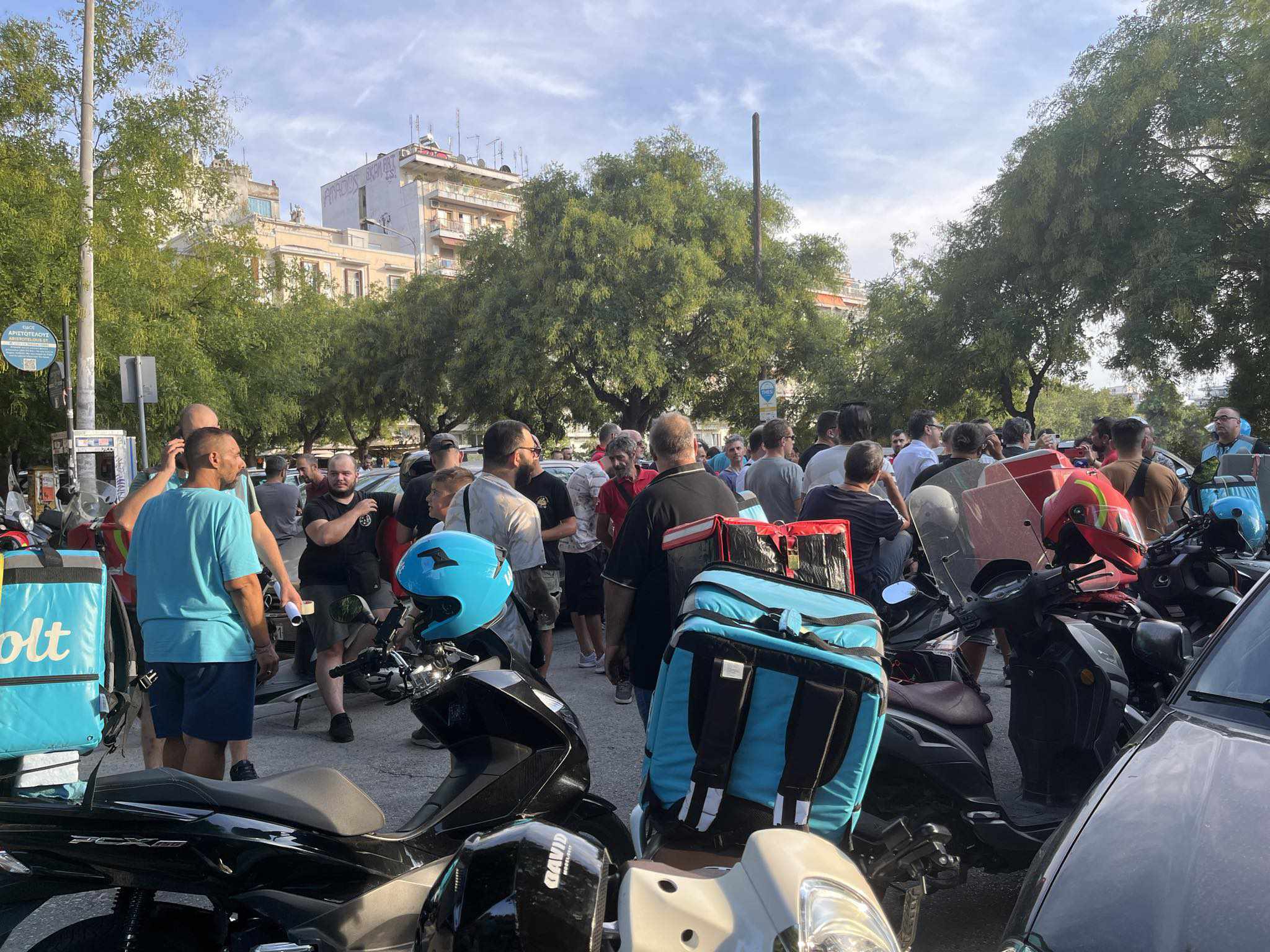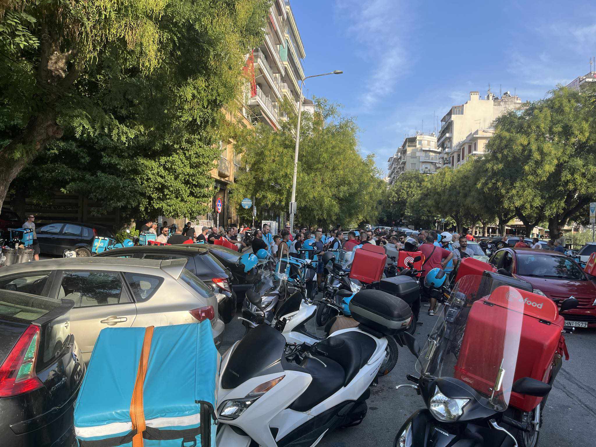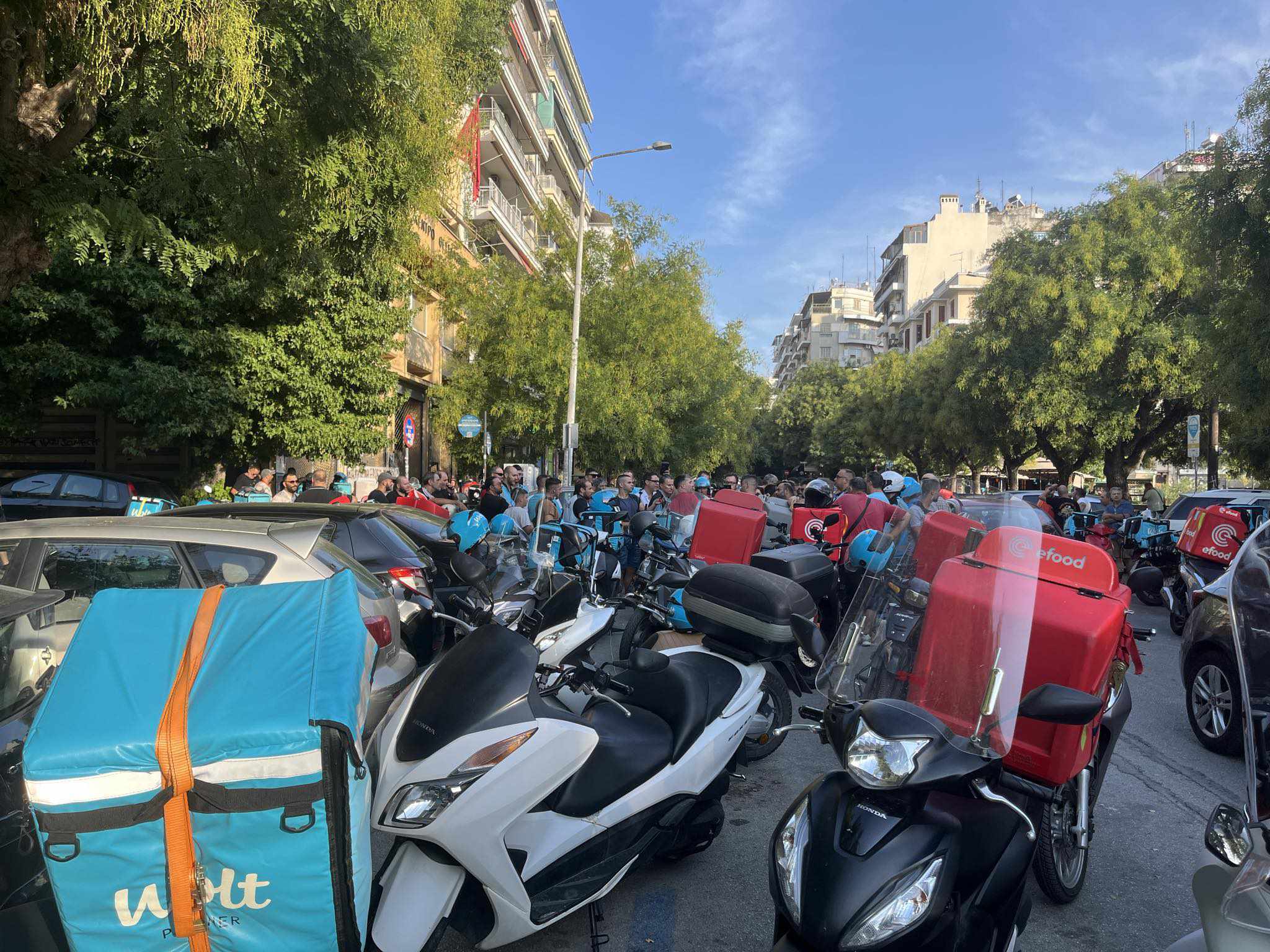 Στις 18:00 η ώρα, στο εργατικό κέντρο συγκεντρώθηκαν σήμερα, 03/09 οι διανομείς φαγητού από Efood και Wolt στη Θεσσαλονίκη, με σκοπό να διεκδικήσουν καλύτερες αμοιβές, συνθήκες εργασίας κ.ά.