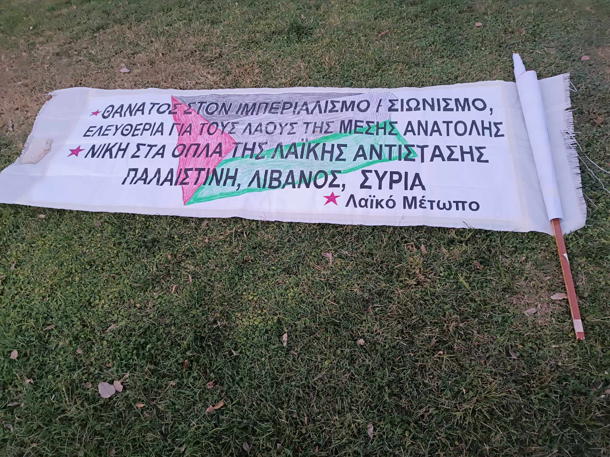 Ο κόσμος συγκεντρώθηκε γύρω στις 7 για την υπεράσπιση του αγώνα του παλαιστινιακού λαού ενώ στη συγκέντρωση συμμετέχουν διάφορες ομάδες και κινήσεις με κοινό αίτημα “Λευτεριά στην Παλαιστίνη”.