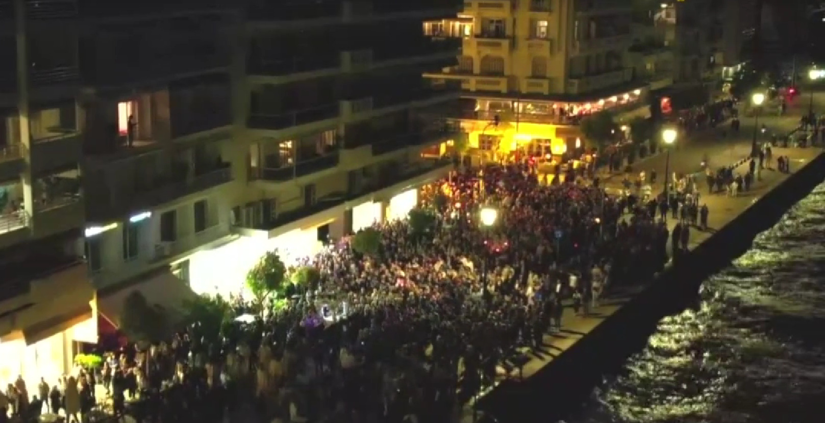 Πλήθος κόσμου μαζεύτηκε πέντε λεπτά πριν τις 21:00. Η Μεγάλη Παρασκευή αποτελεί μέρα πένθους.