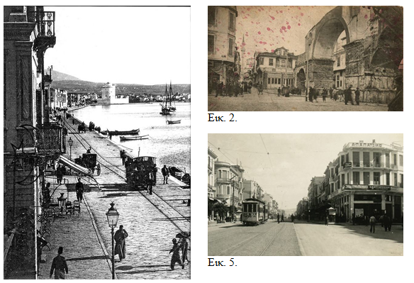 Τα μισά σχεδόν από τα σχέδια του παριστάνουν το τραμ, που όπως φαίνεται του είχε κάνει εντύπωση. Στη φιλοτέχνηση μερικών σχεδίων της σειράς αρωγός στη μνήμη του ζωγράφου υπήρξαν παλιές φωτογραφίες και καρτ-ποστάλ, όπως θα δείξουμε στη συνέχεια.