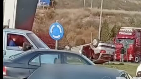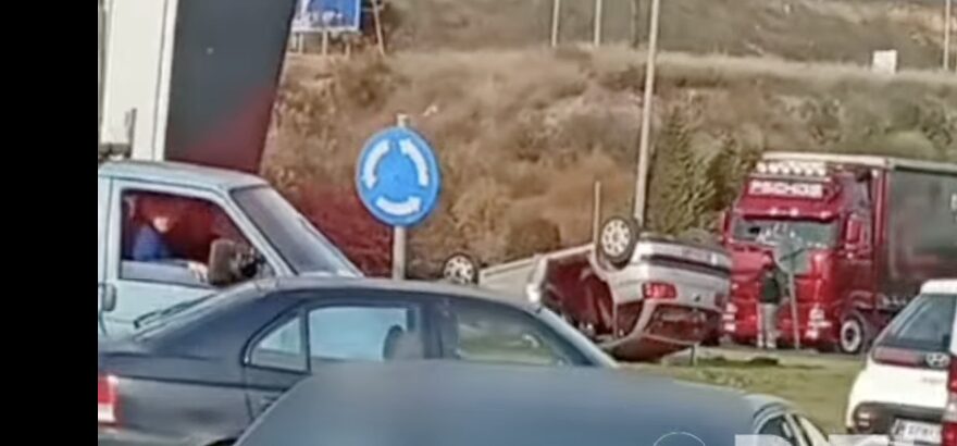 Η ανατροπή έγινε μετά από τη σύγκρουση δυο αυτοκινήτων στο κυκλικό κόμβο