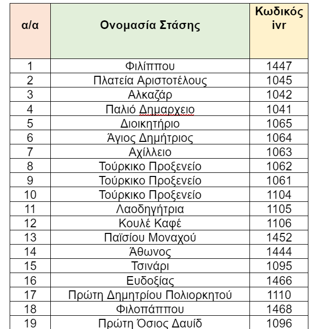 Οι στάσεις της γραμμής 22 θα είναι οι ακόλουθες: