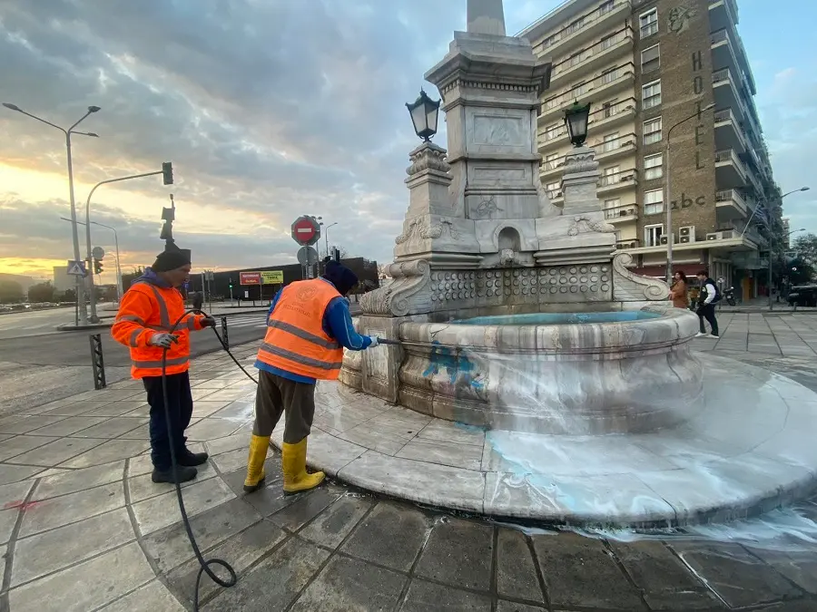 Θεσσαλονίκη: Βανδάλισαν με μπλε και μαύρο σπρέι το Σιντριβάνι