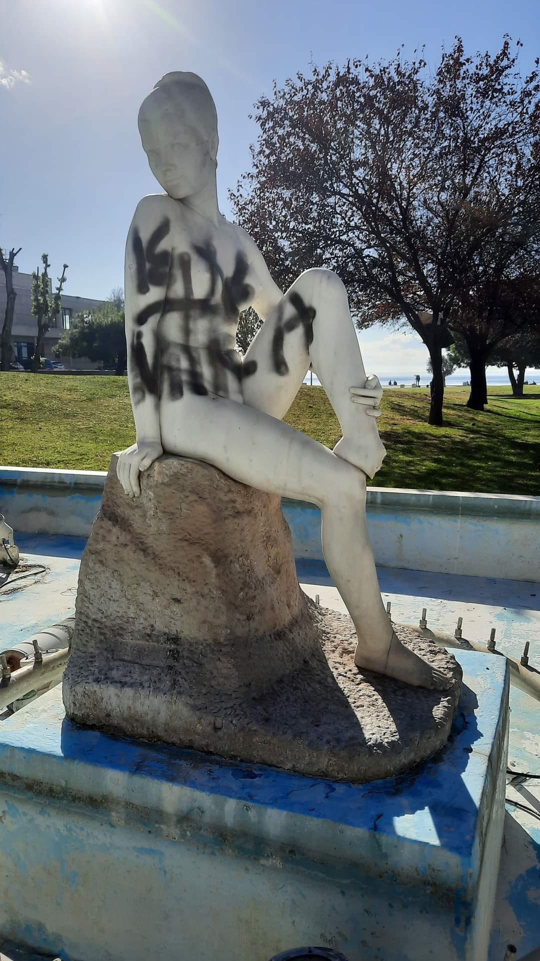 Βανδαλίστηκε η «Λουόμενη», άγαλμα που είναι τοποθετημένο στη νέα Παραλία από τον γλύπτη, Νικόλα Παυλόπουλο που έχει αφήσει το στίγμα του στην πόλη της Θεσσαλονίκης με τα έργα του.