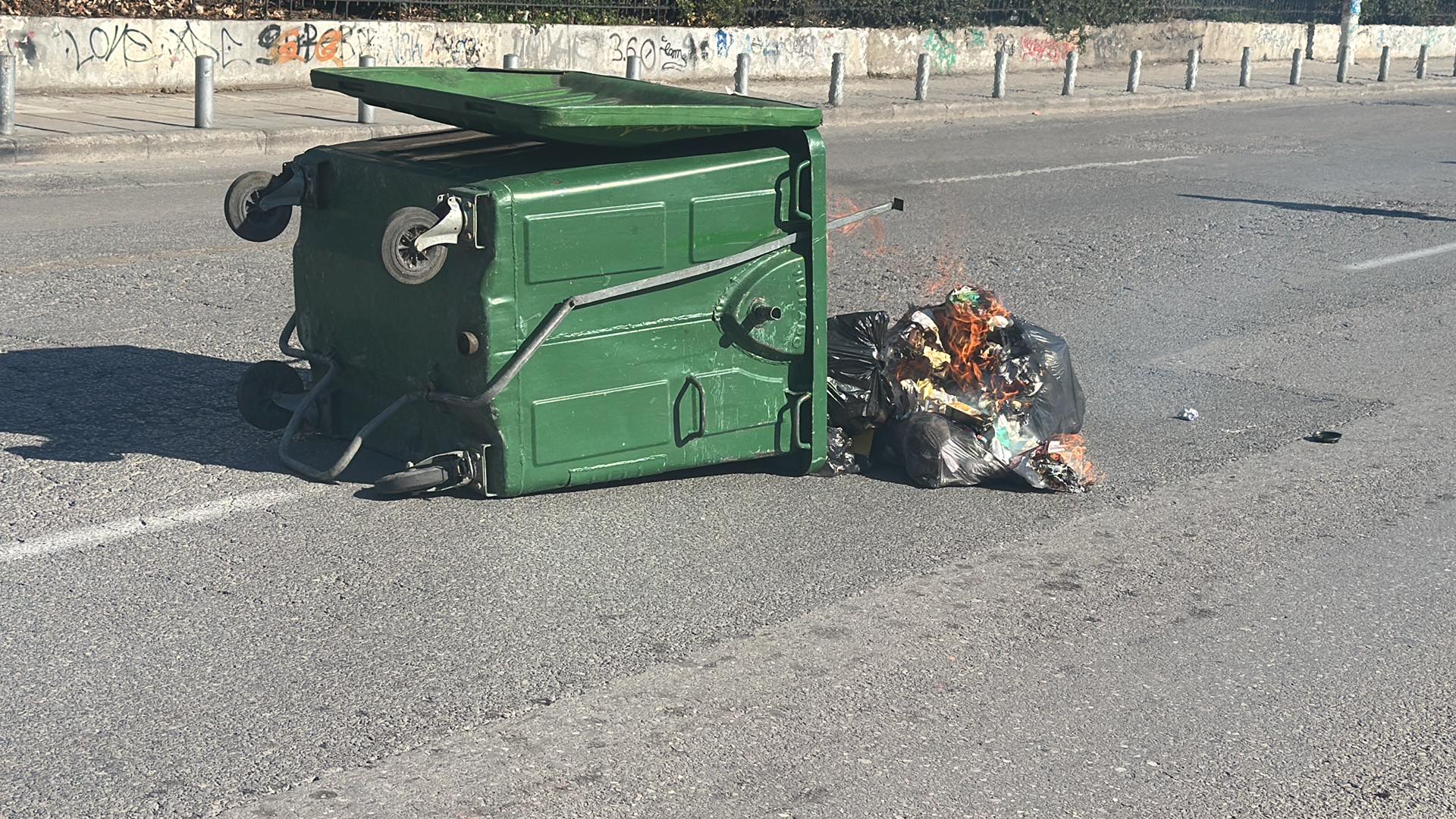 Ένταση σημειώθηκε αργότερα στην Εγνατία στο ύψος του Συντριβανίου, όπως μπορείτε να δείτε και στο παρακάτω βίντεο, ενώ μερίδα των συγκεντρωμένων έβαλε φωτιά σε κάδους.