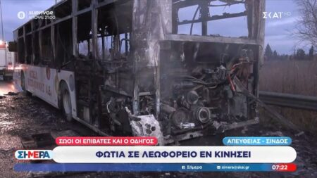 Θεσσαλονίκη-Βίντεο: Κάηκε ολοσχερώς αστικό λεωφορείο – Σώοι οι επιβάτες