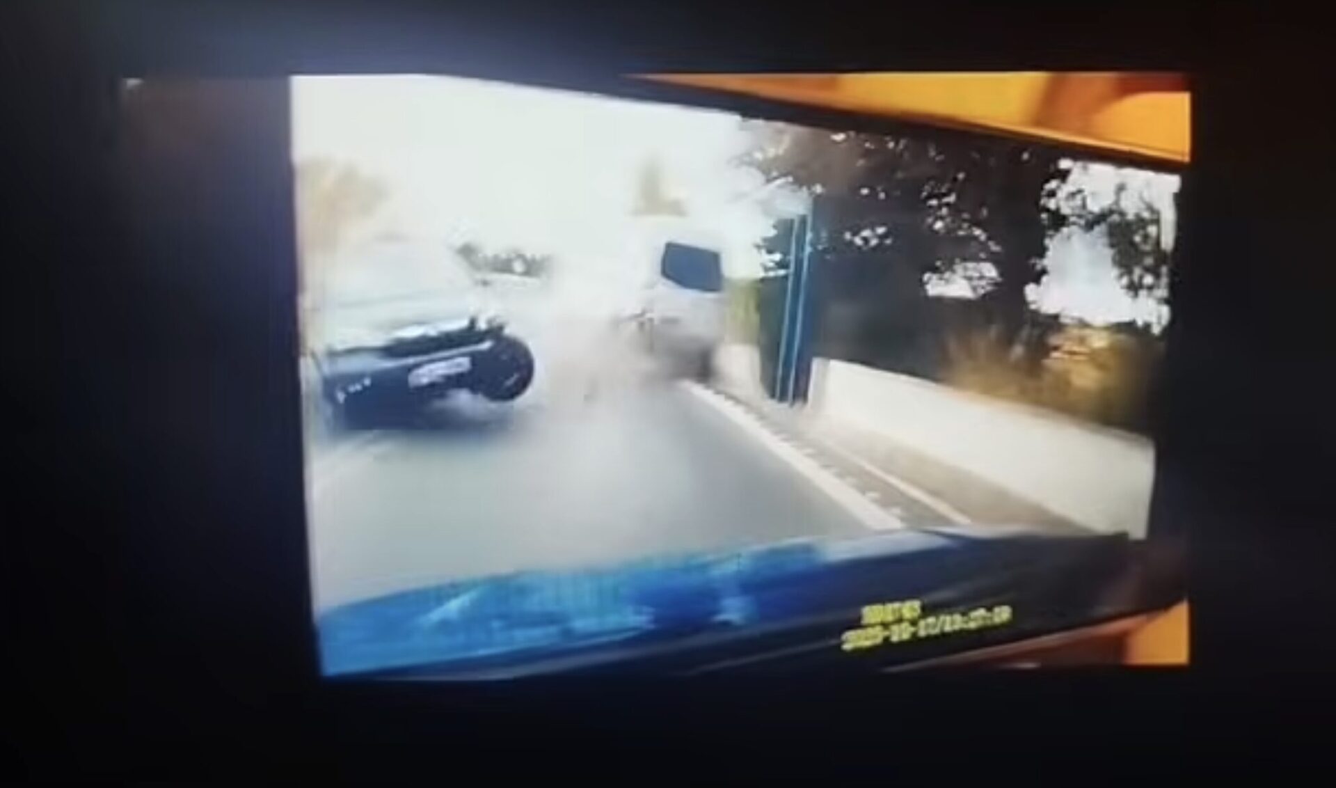 Όπως φαίνεται στο βίντεο το ένα όχημα βγαίνει από τη λωρίδα του και συγκρούεται με βανάκι. Στο τροχαίο ενεπλάκη και το όχημα που βρισκόταν πίσω από το προπορευόμενο βαν.