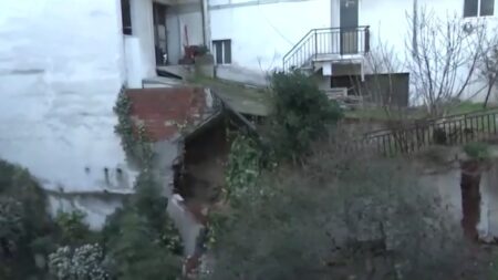 Θεσσαλονίκη-Βίντεο: Πρασιά από παλιό οίκημα απειλεί να πέσει πάνω σε πολυκατοικία