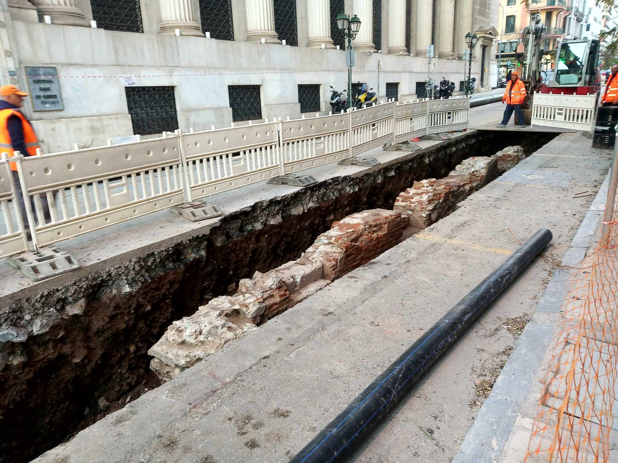 Το μέρος της τοιχοποιίας βρέθηκε στο τμήμα μεταξύ της Μητροπόλεως και της Τσιμισκή, σχεδόν δίπλα στην πλατεία Ελευθερίας - Δείτε φωτογραφίες και βίντεο