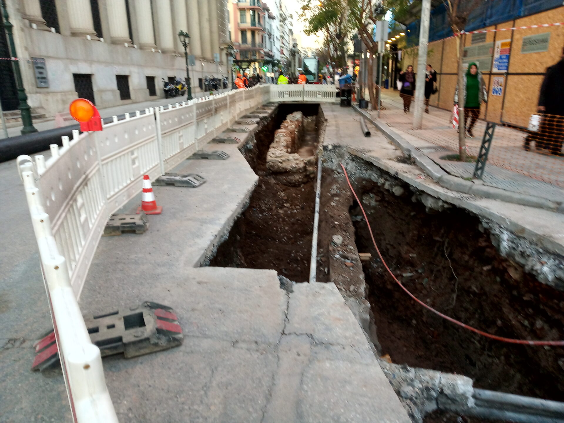 Όπως ανέφερε εργαζόμενος στα έργα «μας έχουν σταματήσει μέχρι νεωτέρας. Περιμένουμε την εκτίμηση των αρχαιολόγων για να ξεκινήσουμε και πάλι».