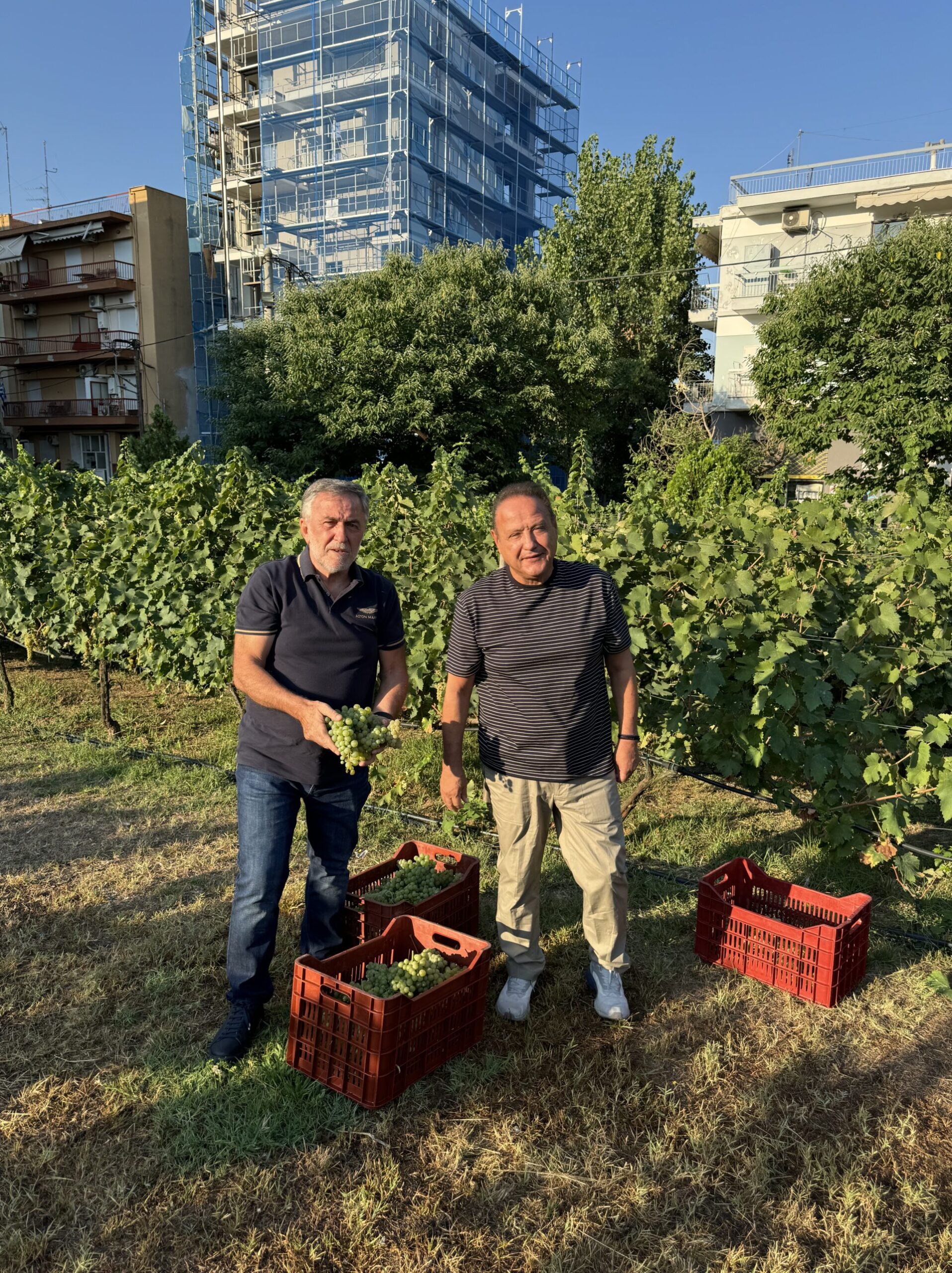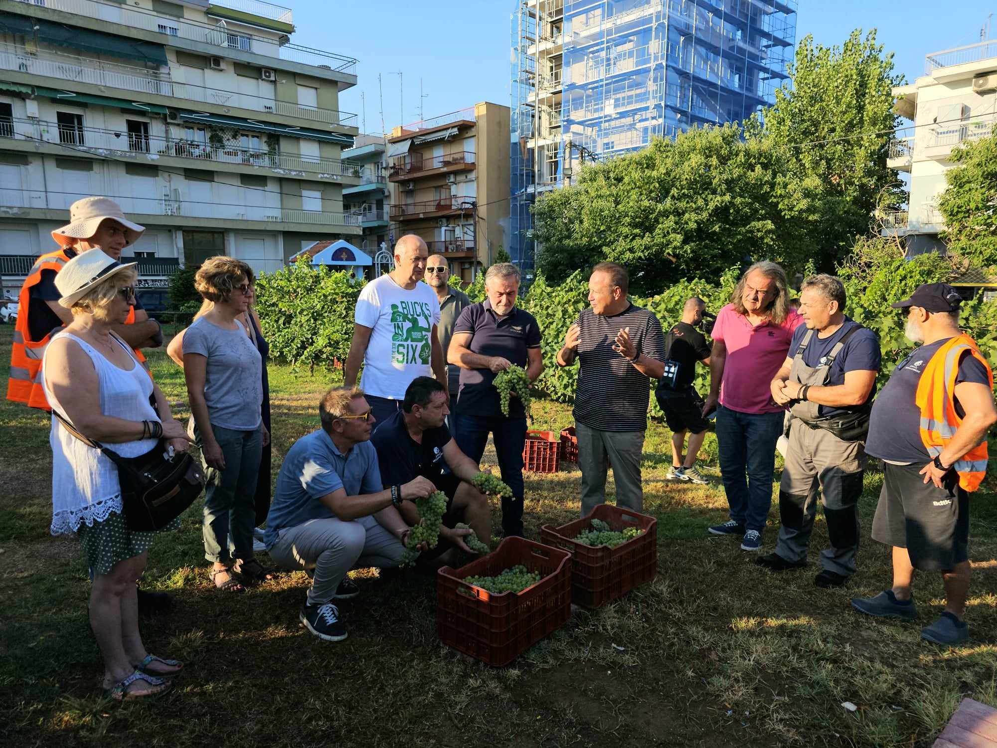 Άρχισε σήμερα ο τρύγος στον αστικό αμπελώνα, τον οποίο έχει δημιουργήσει ο Δήμος Θεσσαλονίκης σε έκταση δύο στρεμμάτων απέναντι από το Καυτανζόγλειο σε συνεργασία με το Εργαστήριο Αμπελουργίας της Γεωπονικής Σχολής του ΑΠΘ και με το Κτήμα Γεροβασιλείου.