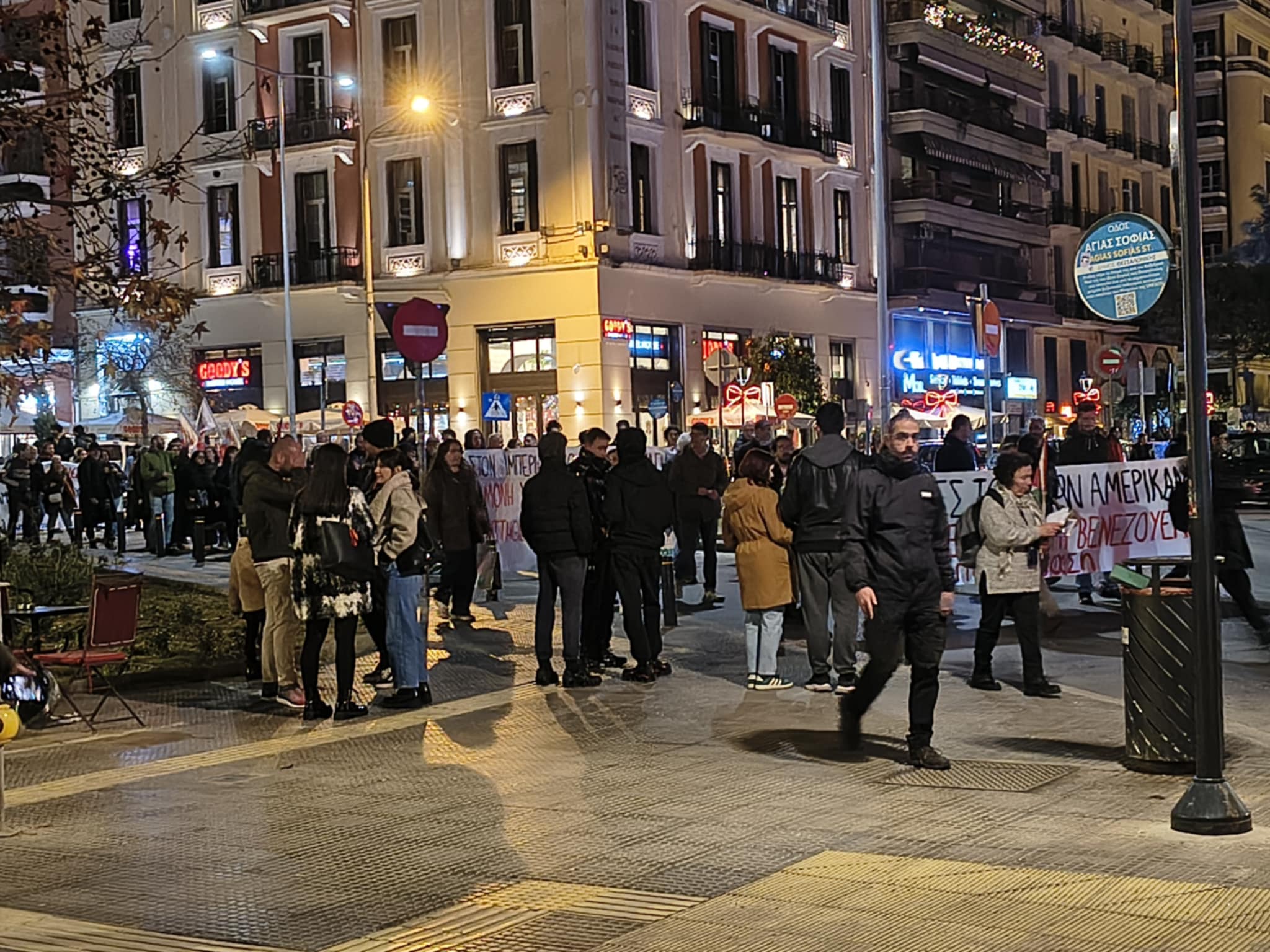 Πορεία διαμαρτυρίας κατά της επέμβασης των ΗΠΑ στη Βενεζουέλα πραγματοποιούν αυτή την ώρα σε κεντρικούς δρόμους της Θεσσαλονίκης, συλλογικότητες και οργανώσεις της εξωκοινουβελευτικής αριστεράς και του ευρύτερου αντιεξουσιαστικού χώρου.