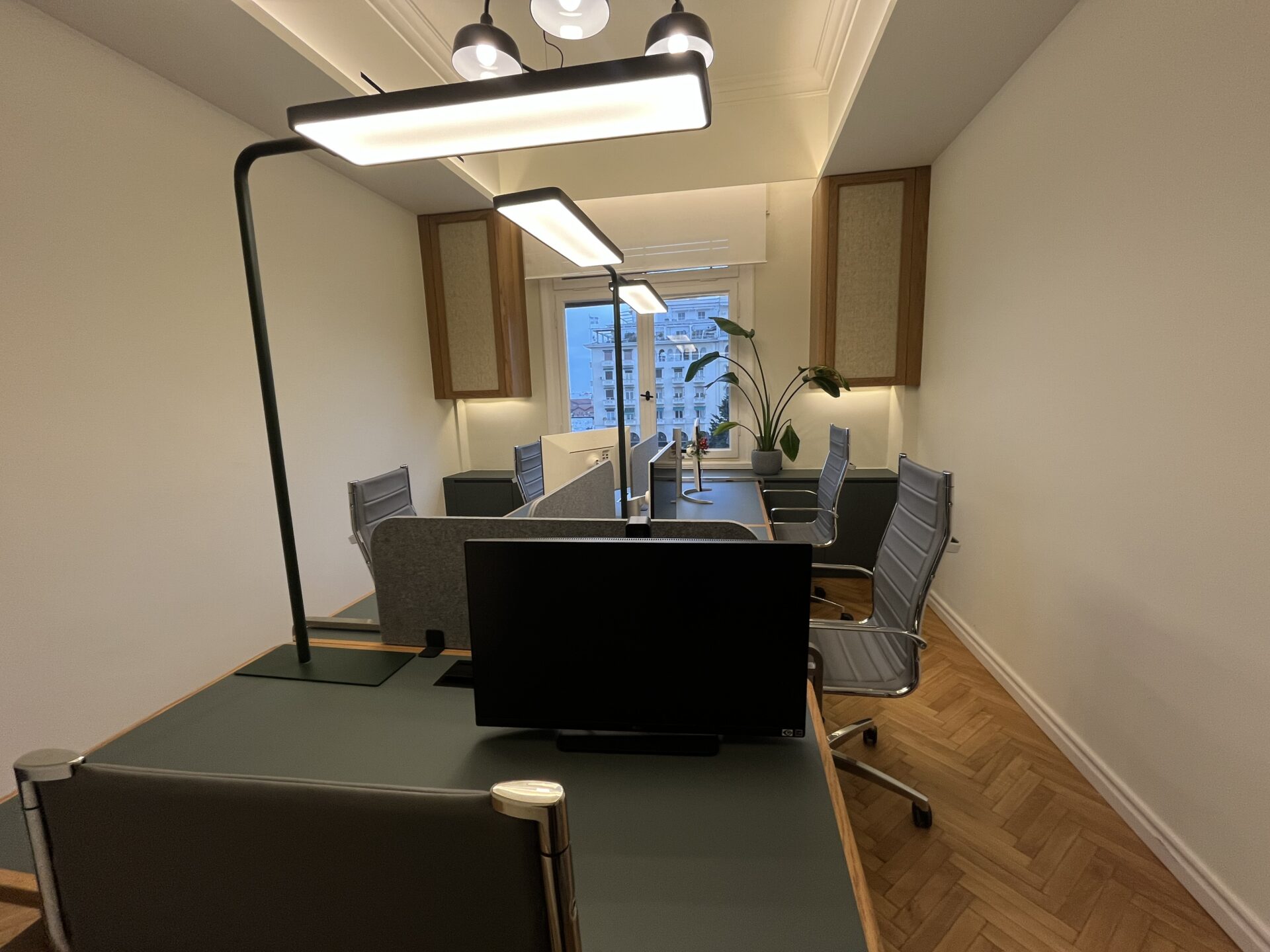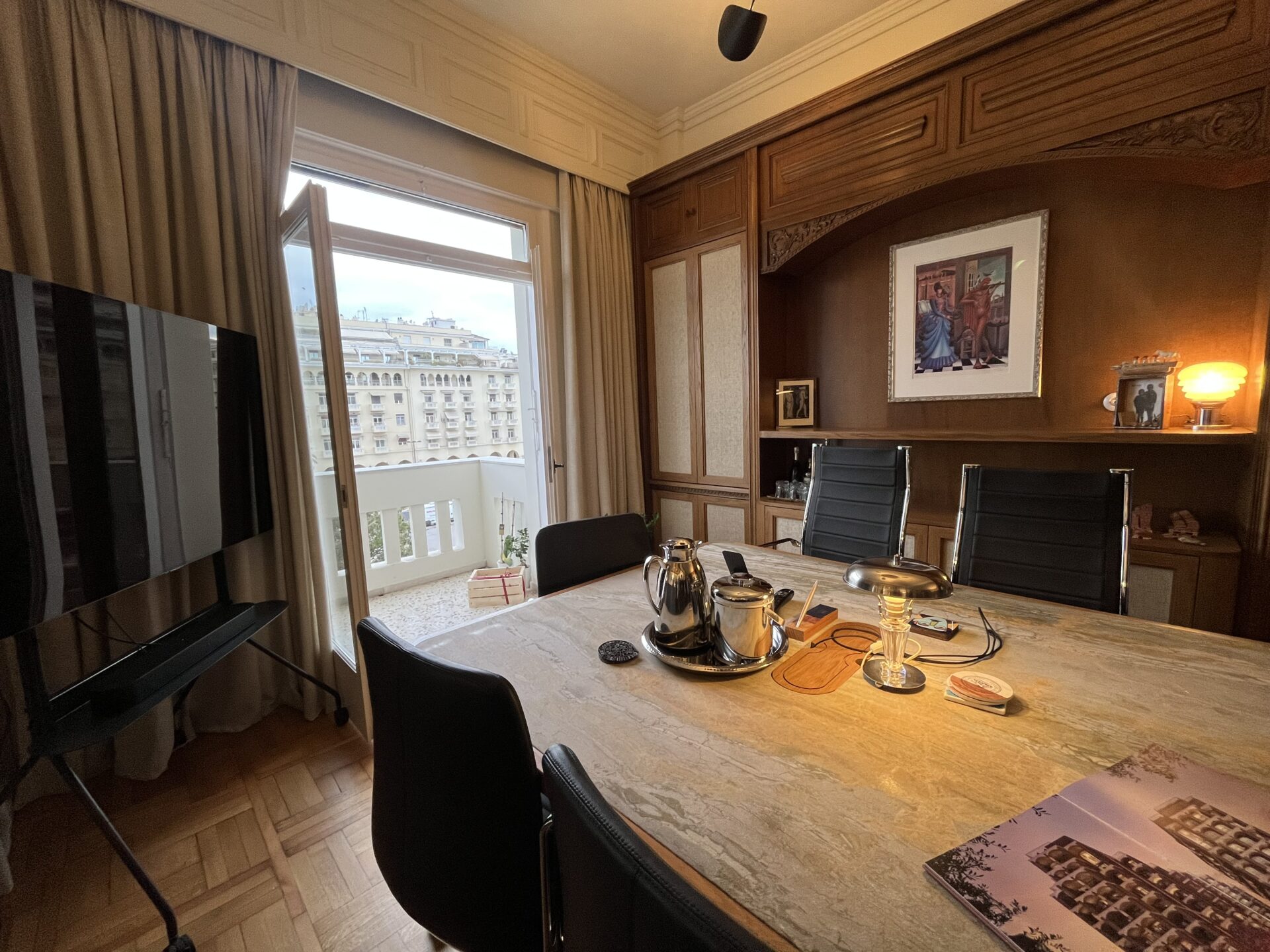 Τα γραφεία που βρίσκονται από την πλευρά της Αριστοτέλους, προσφέρουν μία θέα που σου κλέβει την ανάσα, αφού έξω από το παράθυρο έχεις «στο πιάτο» το κεντρικότερο σημείο της Θεσσαλονίκης, εκεί όπου χτυπά η καρδιά της πόλης.