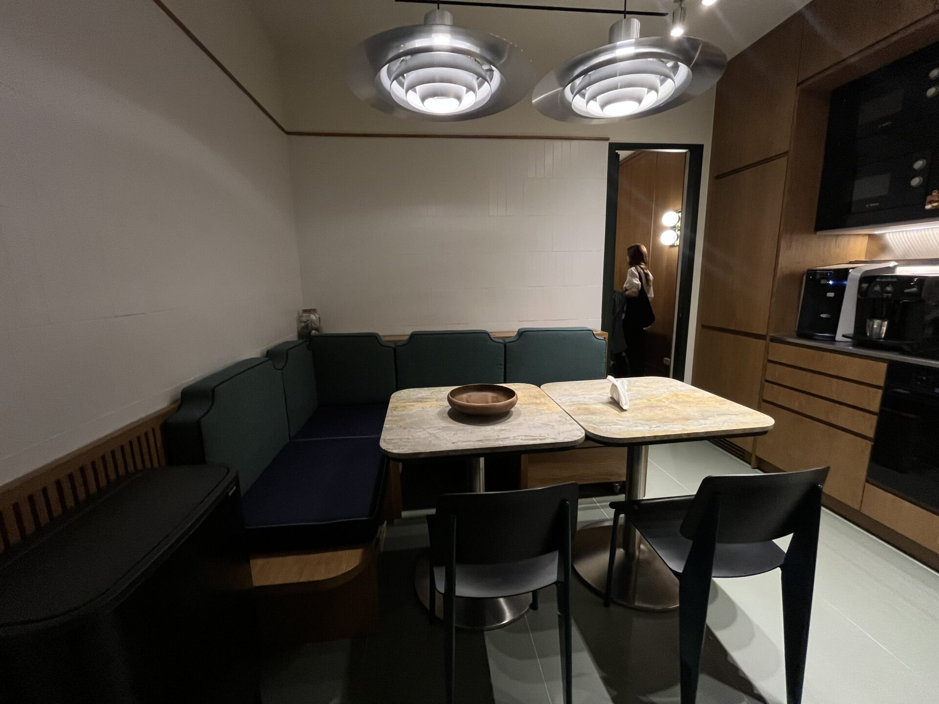 Η κουζίνα σε ταξιδεύει σε μακρινά μέρη και μια άλλη εποχή, με το στυλ Αmerican diner και το booth γύρω από το τραπέζι, στο οποίο οι εργαζόμενοι μπορούν να απολαύσουν παρέα τα γεύματά τους και για μερικές στιγμές να αφήσουν το μυαλό τους να ξεφύγει από τη δουλειά.