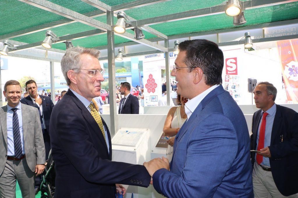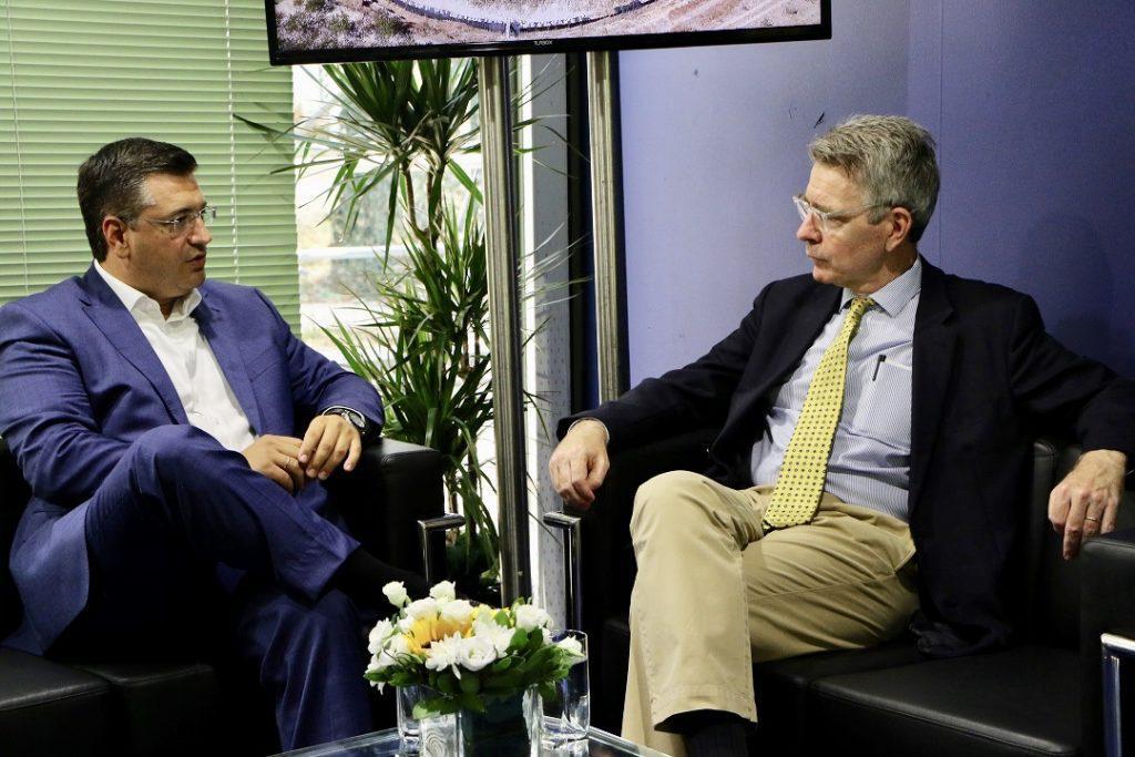 Συνάντηση του Πρέσβη των ΗΠΑ Τζέφρι Πάιατ με τον Περιφερειάρχη Κεντρικής Μακεδονίας Απόστολο Τζιτζικώστα στο περίπτερο της Περιφέρειας στην 84η ΔΕΘ
