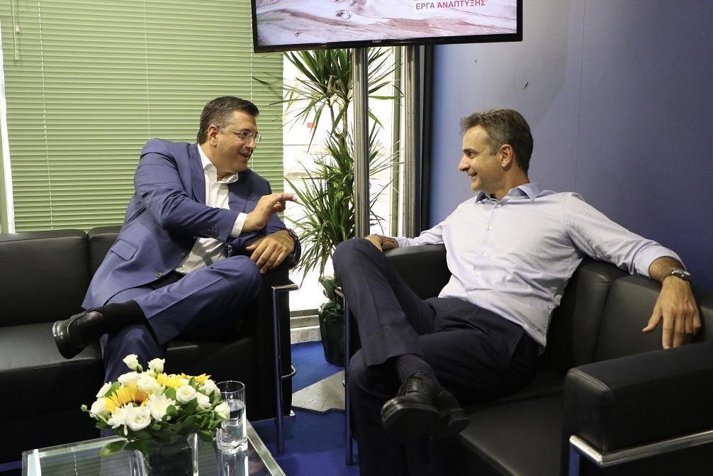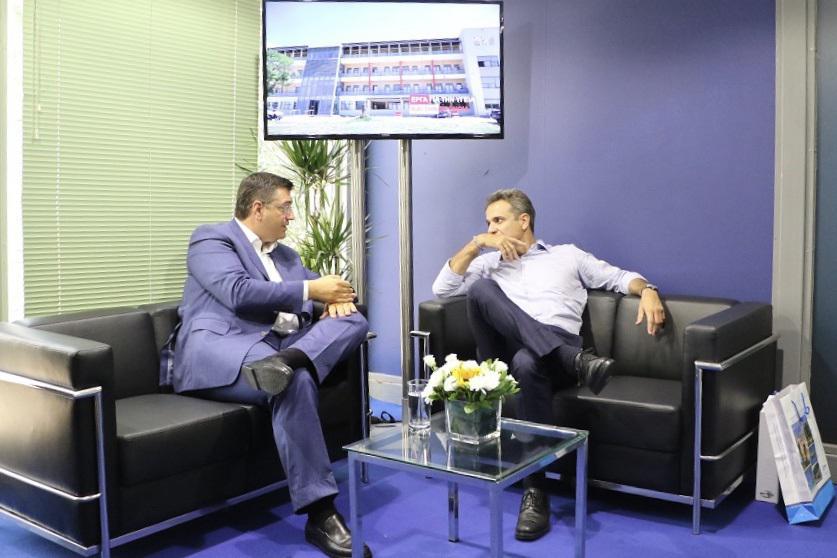 Τον Κυριάκο Μητσοτάκη υποδέχτηκε ο κ. Τζιτζικώστας στο περίπτερο της ΠΚΜ.