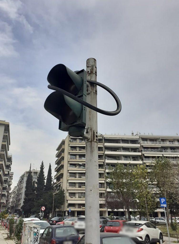 Τι μπορεί να κάνει ένα λάστιχο ποδηλάτου, κρεμασμένο σε φανάρι της παραλιακής στη Θεσσαλονίκη;