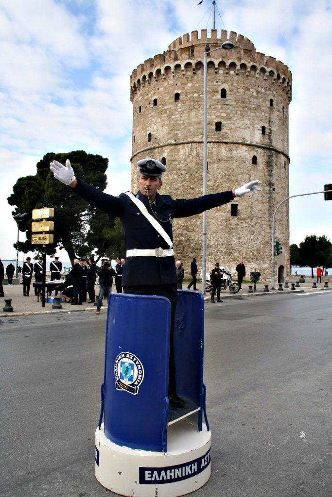 Πραγματοποιήθηκε σήμερα το πρωί στην Πλατεία Λευκού Πύργου, ειδική εορταστική εκδήλωση προς τιμήν του ρυθμιστή τροχονόμου, κατά την οποία τοποθετήθηκε το παραδοσιακό τροχονομικό βάθρο (βαρέλι), ενώ η μπάντα της Αστυνομίας πλαισίωσε την εν λόγω εκδήλωση ψάλλοντας τα κάλαντα της Πρωτοχρονιάς.