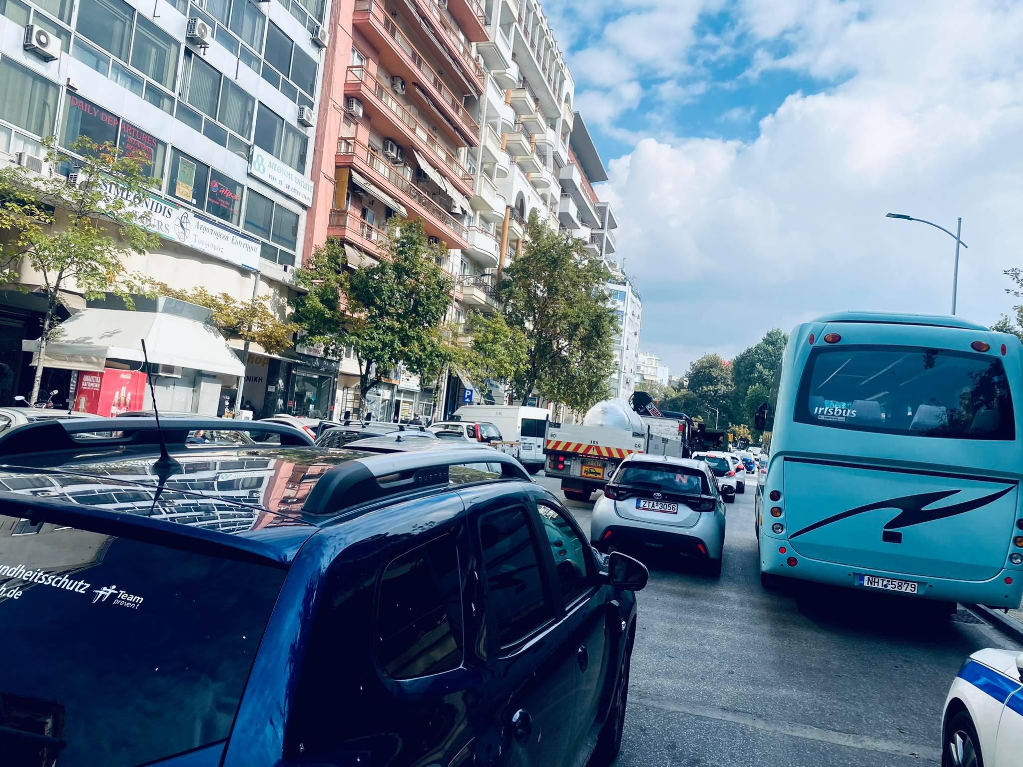 Το κυκλοφοριακό έμφραγμα στην πόλη ξεκινάει από την δυτική είσοδο και συνεχίζεται σε όλο το κέντρο, καθώς χιλιάδες αυτοκίνητα προσπαθούν να το διασχίσουν μέσα από τα στενά μεταξύ Εγνατίας και παραλιακής, με αποτέλεσμα να μένουν εγκλωβισμένα.